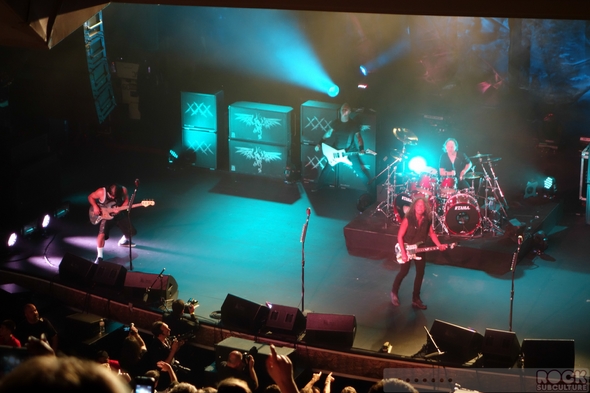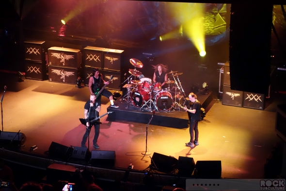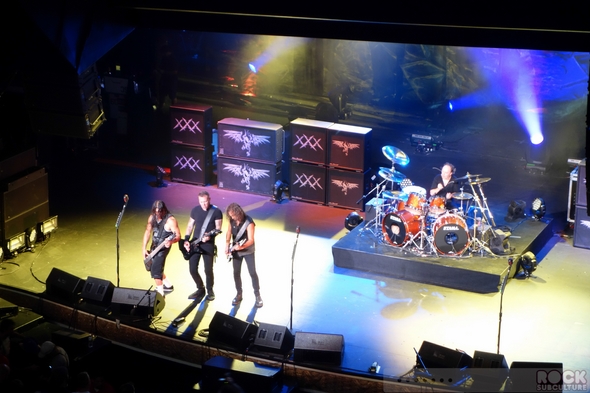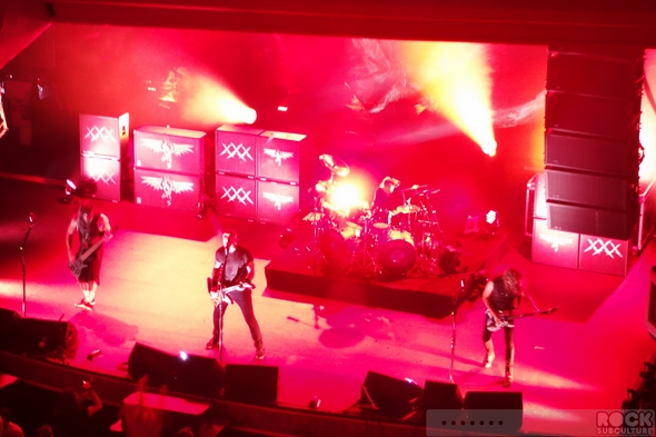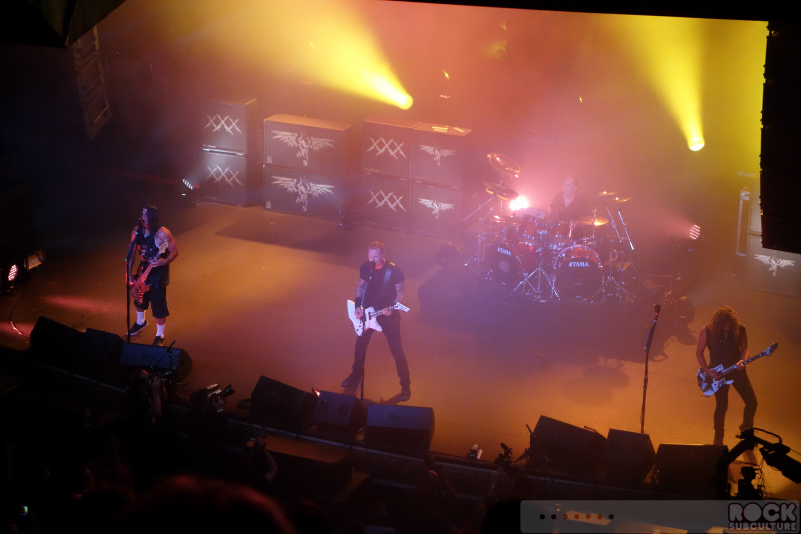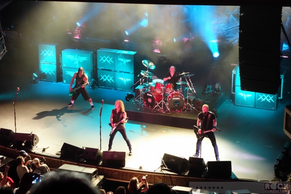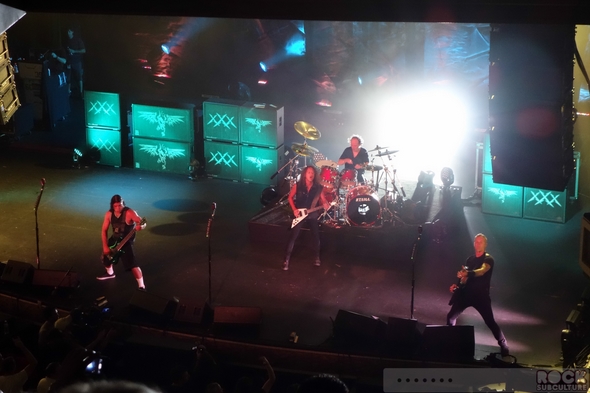 “What do you think? You’re scared… you want to know more, you want to see the whole thing”… Capping off “Metallica Day” at Comic Con International: San Diego (i.e. San Diego Comic Con) with a “secret” concert at Spreckels Theatre, the metal band’s front man James Hetfield makes a mid-gig reference to the IMAX 3D film, Metallica Through The Never. The Rock and Roll Hall of Fame band gave away tickets to the intimate 1,463 capacity concert venue during their Comic Con Hall H appearance earlier in the day (and funny enough, Hall H accommodates a much larger crowd of around 7,000. I know from picking up my own ticket at the special will call earlier in the day that many Fan Club members were also in attendance, so it was a pretty great energy from the crowd. Though the show was not too long (they came on an hour late at about 11 PM and finished up well before 12:30 AM), it was a fairly relentless onslaught of the metal music fans came to hear.