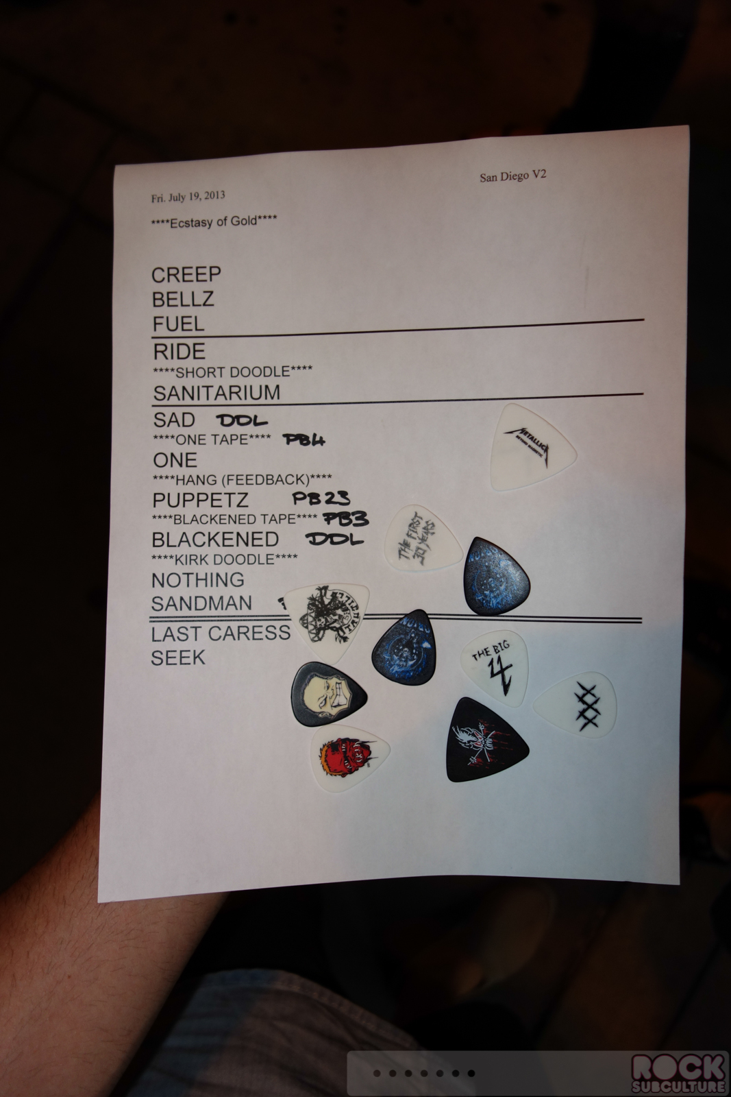 Below is a photo of the setlist and some of the probably hundreds of guitar picks thrown into the audience at the end of the show, in promotion of their upcoming film:
