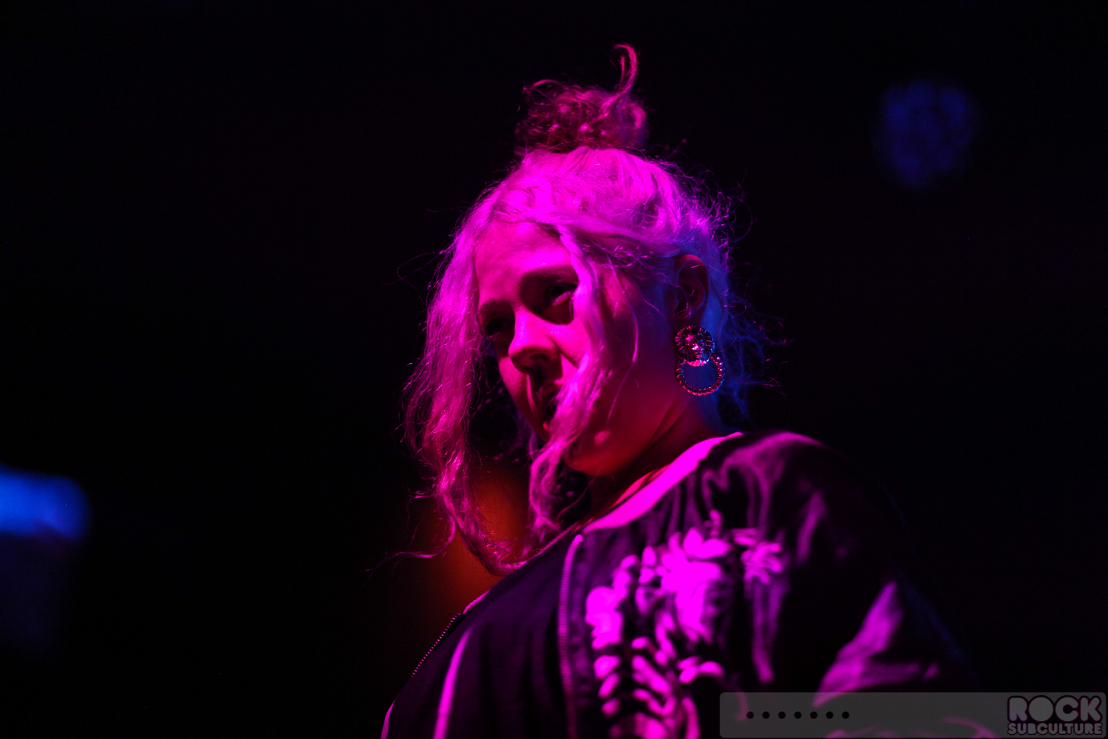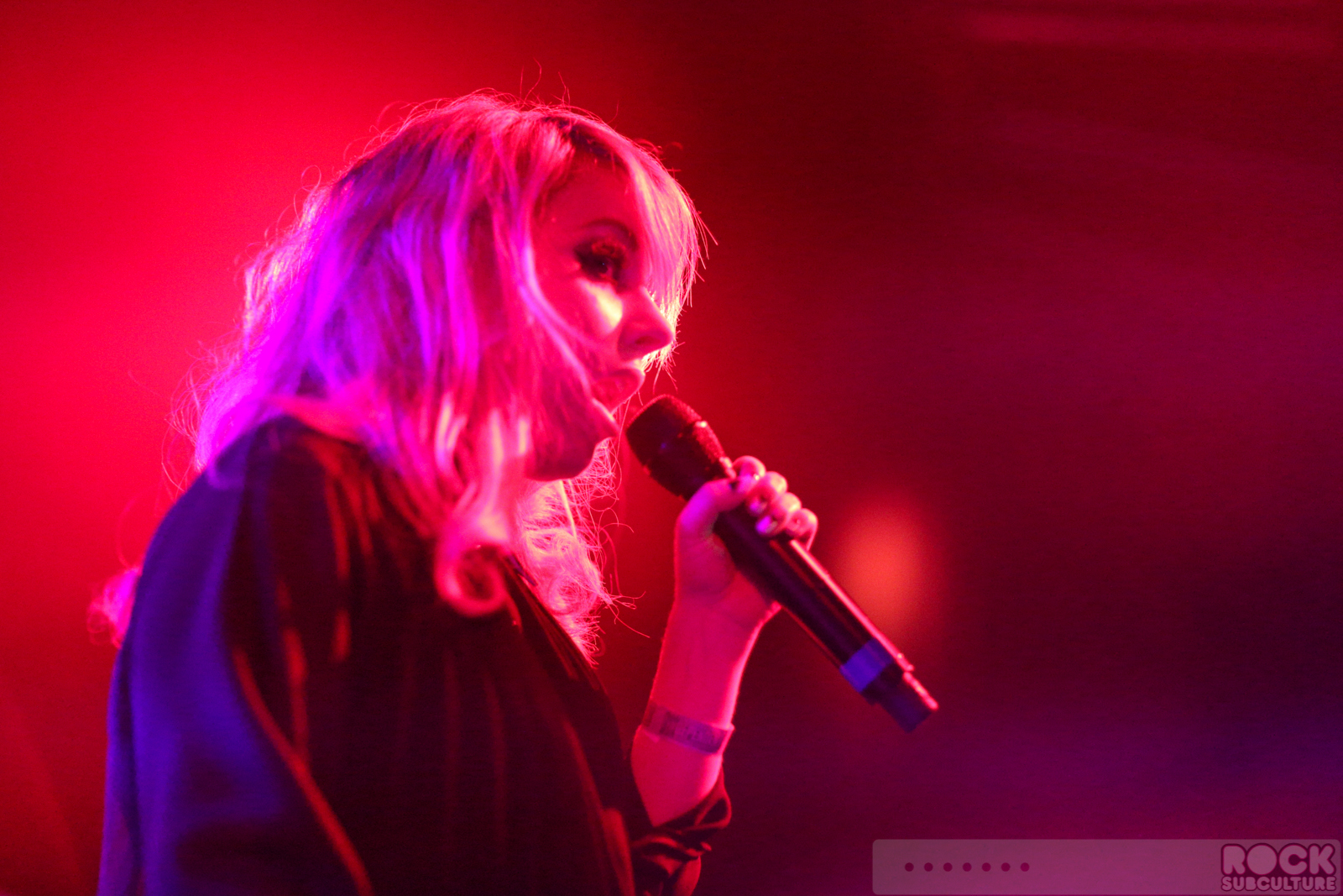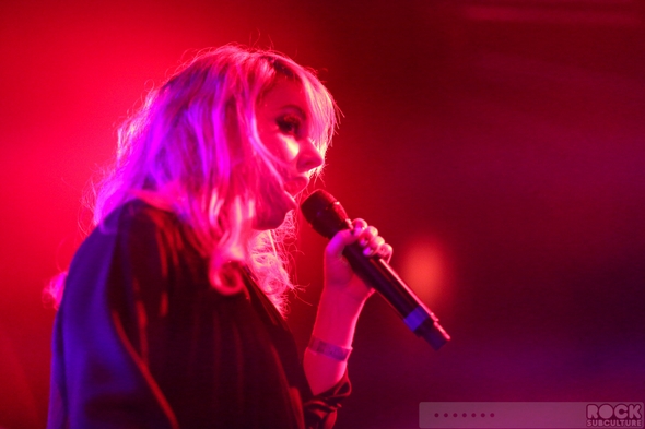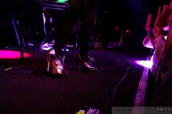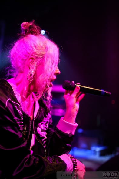 Since there is no photo pit at The Independent, I always show up way before doors just to ensure I can get a good position for photography without having to wade through a crowd of people who put in their time. There was one young man who arrived a good half hour before me that was a big fan of both artists, so it was awesome to see him have a great time at this show, as Amanda from MNDR at one point extended her mic to him to fill in on vocals (he seemed to know every word of every song for both artists) and at the end of the Little Boots set, Victoria reached down and took his hat and wore it at the end of her encore.