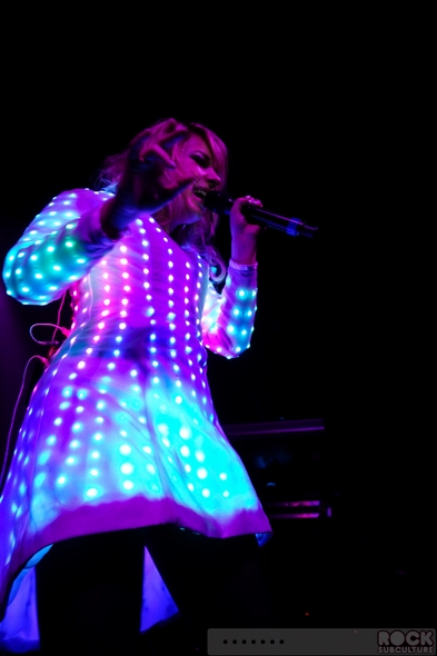 After finishing out the main set, Victoria came back on stage with a white dress that employed some impressive lighting effects as she played through one song off each album – “Remedy” and “Shake”. I only shot the first three songs of her set and stowed away my pro gear, but got some photos of her electrifying dress with a pocket camera, which can be found at the bottom of my article.