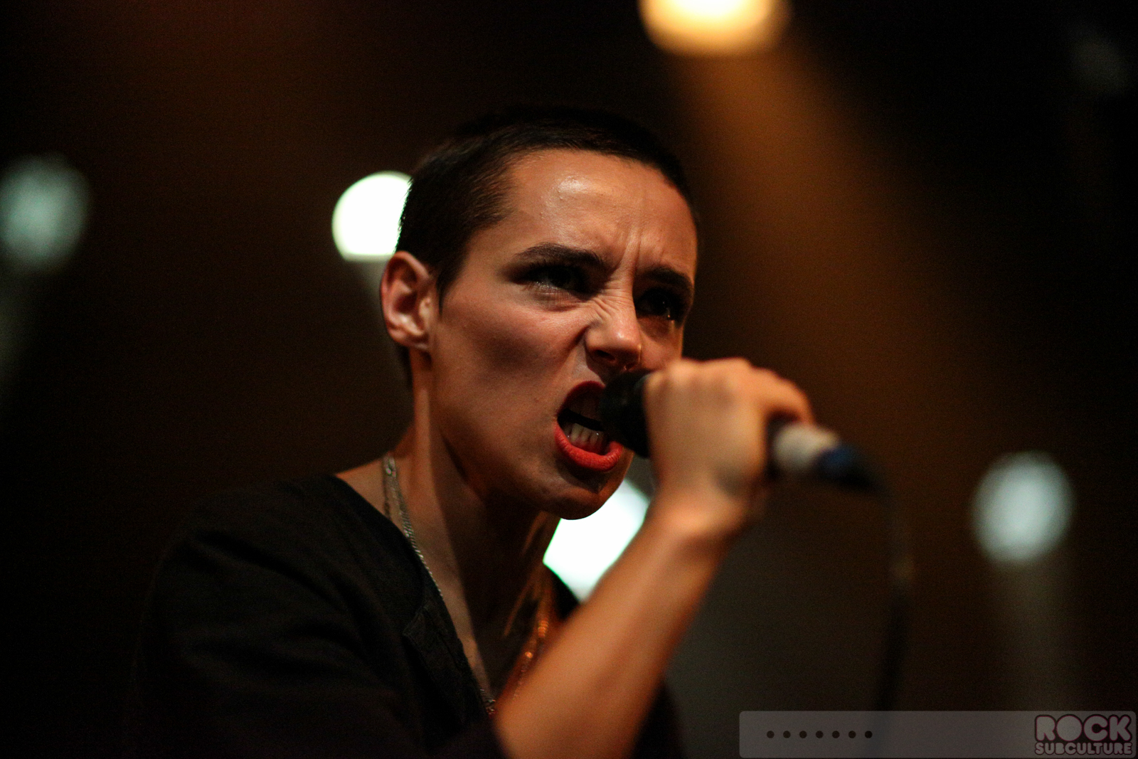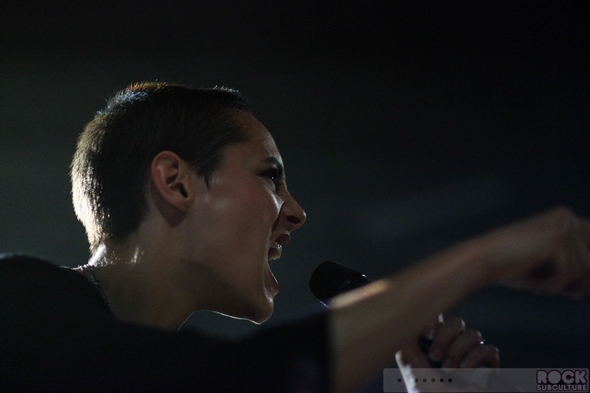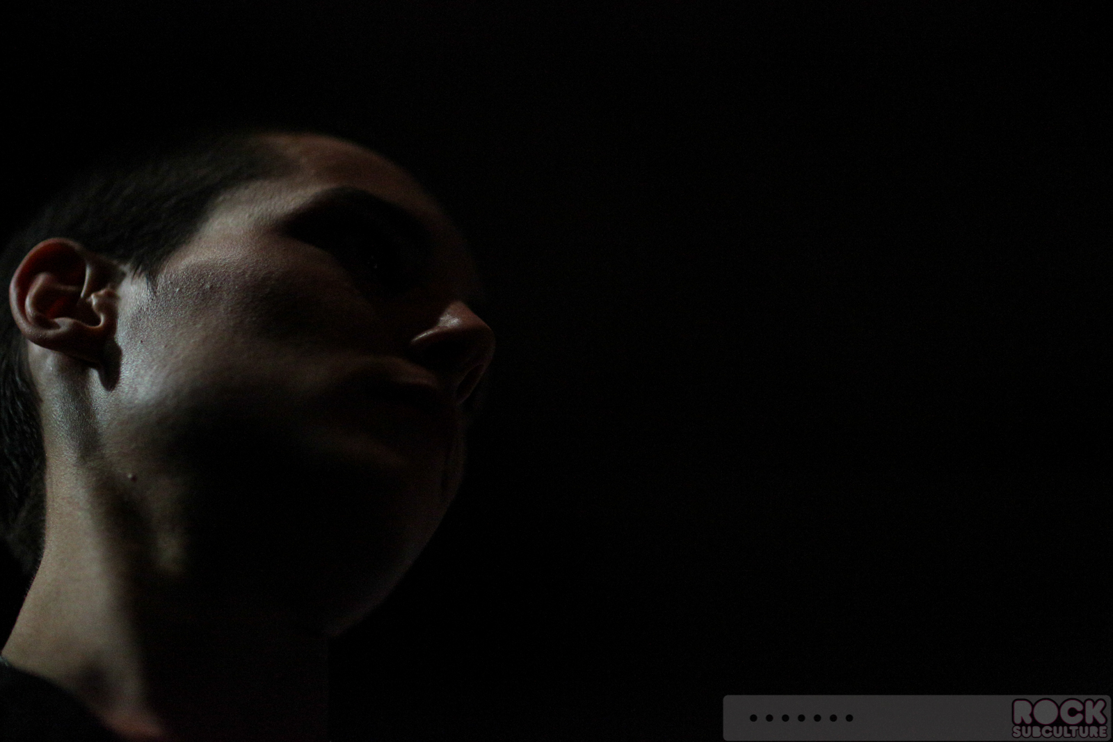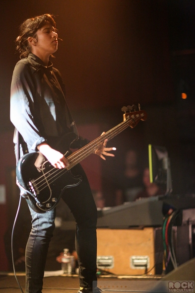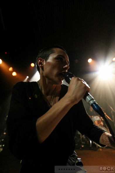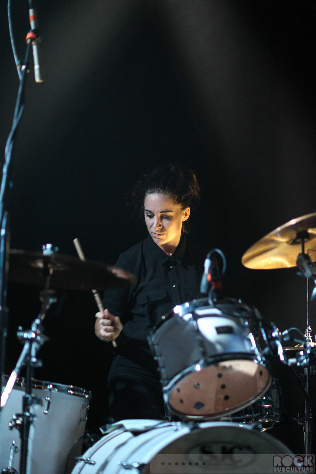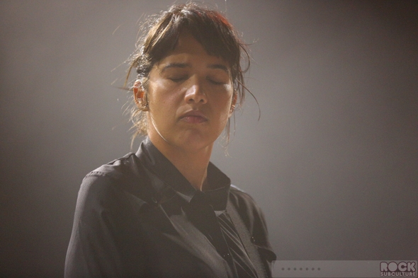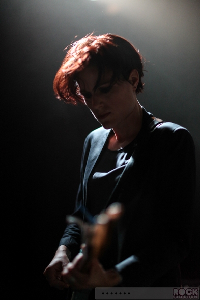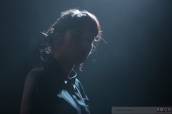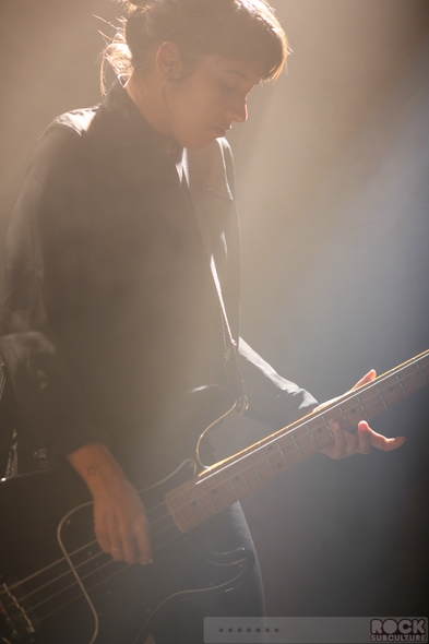 When entering a concert venue with no security pit for photography, I always make every attempt to find a fixed position from which to get some drummer shots, so I had a perfect point of view to witness Fay’s work on her kit. In the live setting, she is absolutely the foundation upon which everything else follows cue and layers upon, and she is a brilliant drummer. Many of the songs feature a very complex mosaic of beats, and not only is she technically flawless, she fuels much of it with intense emotion, giving it all an edginess and soul that could never be reproduced by the best of technology-driven music that we are accustomed to today.