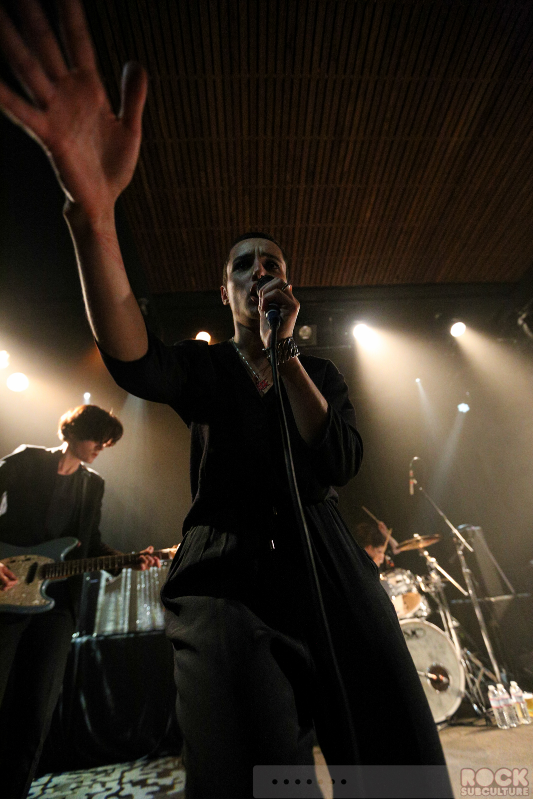 The real thing. Real, authentic rock artists can’t be manufactured… they are born. And standing witness to the phenomenal performance by London-based post-punk revival rock band Savages, I had a deep feeling that maybe they were born a few decades later than when they should have been, yet it makes them that much more powerful. Having been born in 1973 myself, I was too young and on the wrong continent to catch the original shows put on by pioneering artists such as Bauhaus, Sex Pistols, Siouxsie and the Banshees, and The Cure… but I had this deep sense and feeling in watching Savages at The Independent last night that maybe what I felt like experiencing their show is what it may have felt like back in the day with those iconic bands. This was the second of two sold out shows in San Francisco. It was a different sort of show – unlike any of the 75 or so others I’ve attended thus far this year, and the many more going back years prior to that… there is nothing contrived or manufactured about Savages. Nothing at all – it is just pure post-punk art at its finest, in the best format of all – a live concert performance. They have brought something new to this space that hasn’t been felt in decades – even by those original players still recording today. A true resurrection. And given the state of society and culture today, it could not be more timely.