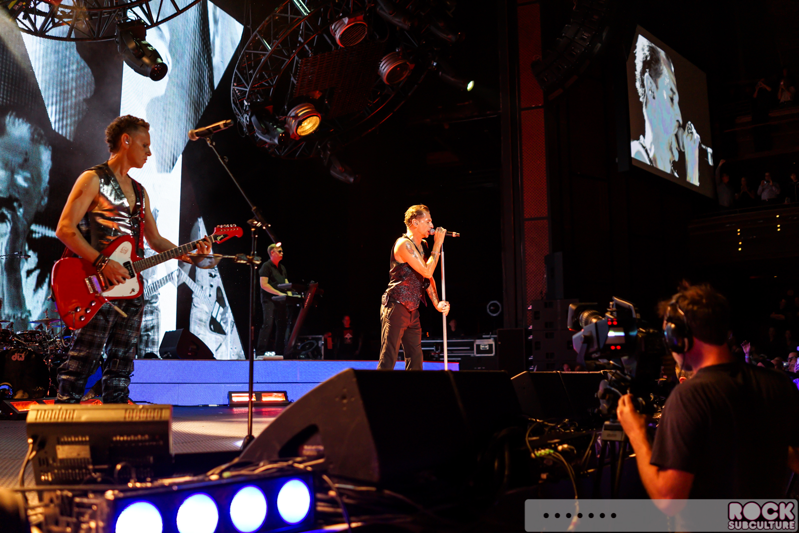 Touring member Christian Eigner is really a critical member of the band now in their live shows, as he is an amazing drummer, and the live drum sound introduced by Alan Wilder with Songs of Faith and Devotion dramatically improved DM’s live shows, and it was really smart of them to embrace that going forward. The contrast with the drums and Martin’s guitar with the more synth-sounding elements of their music is best reflective of how they’ve evolved since their origins with Vince Clarke on Speak and Spell. Yet, funny enough, the drums work wonderfully with “Just Can’t Get Enough”, and help to make it sound like a song that could have debuted yesterday, due to the infectious pop sound.