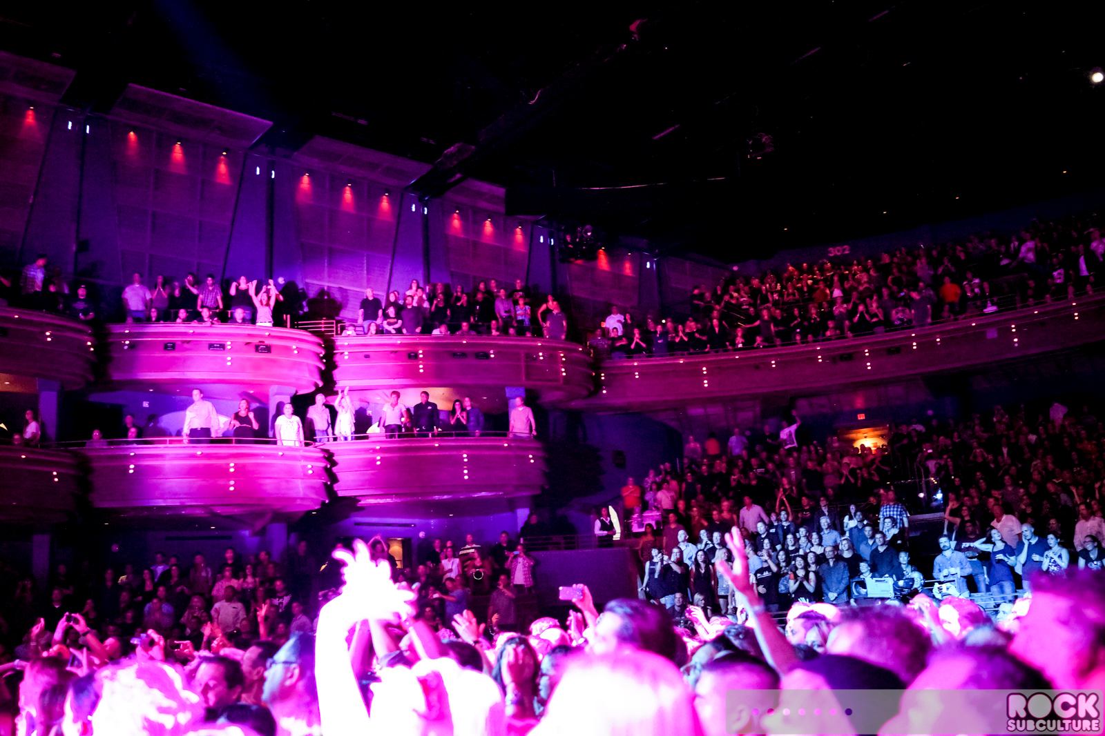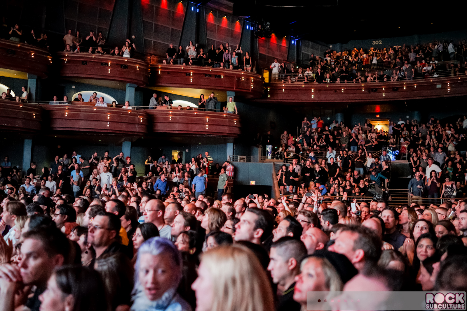 When Depeche Mode announced the North American dates and cities for their Delta Machine Tour, I immediately identified the one at Pearl Concert Theater at Palms Casino Resort as the one to go to, since I was familiar with the (relatively) small and intimate venue from past shows, and it was one of just a few in the United States with a general admission standing floor area in front of the stage. Having seen them five times overseas earlier this year, I had become spoiled with standing right in front of the stage, so that has become a must for me in experiencing my favorite band. With the show last night, I certainly wasn’t disappointed, and I suspect most to all in the crowd felt the same, as Vegas is one of those rare cities that pull fans from not only all over the U.S., but all over the world. It was quite a celebration for not only the audience, but seemingly the band as well, who were quite jubilant throughout the performance, which clocked in at about two hours (there was no supporting act at this date). For me, being surrounded by friends who also traveled from California for this show, it was the perfect way to close out an amazing year of live music by the band who have in many ways impacted my life with their art, particularly in my formative years throughout the 80s.