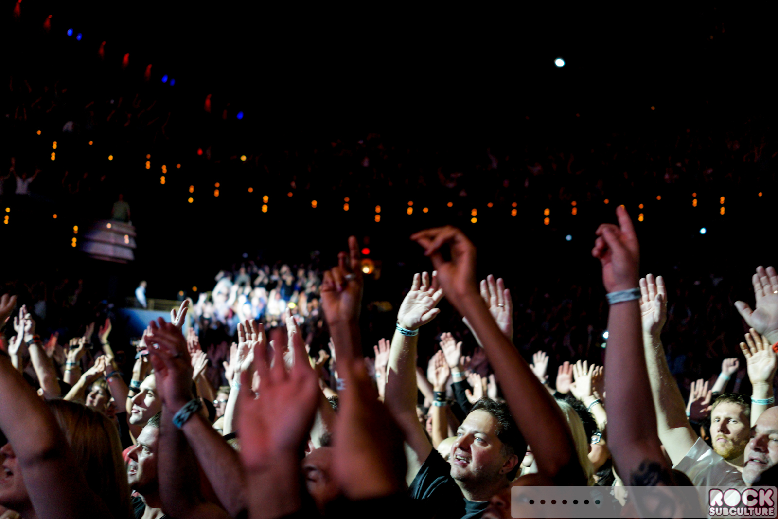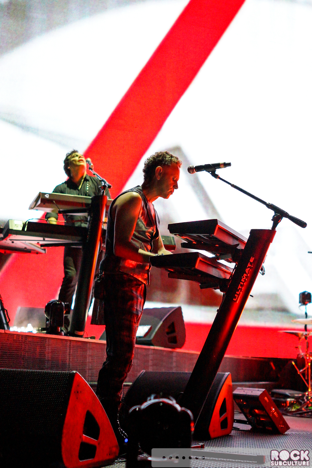 It is almost as though there is no pressure – well, no negative pressures – on the band. They love music, they love performing, and they know their fans are true. There is such excitement beaming from the stage, and Dave plays us – the audience – almost like an instrument as well. A musical cue or slight gesture elicits an expected response and reaction from the crowd, at times shifting into revival-like waving of arms or fluttering of hands, depending on the song and the moment in the song. Depeche Mode concerts are an experience, worshiping at the sounds, the energy, the lyrics, and the charisma of Dave and the band.