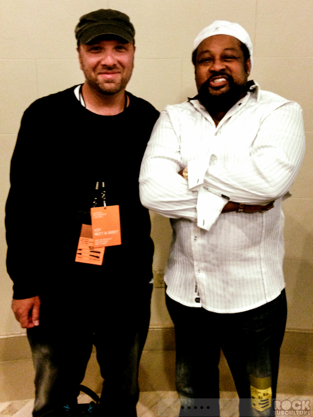 There was a bit of a mix up with my ticket, and I was approved to shoot with my pro cameras from front of house, so I was waiting in the venue lobby, and chatting with another fan, when a woman came up to me and asked us if we’d like to meet the man who wrote the song, “Go West”, Victor Willis.