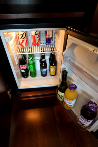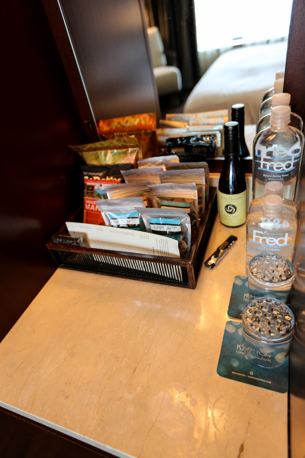There is a stocked minifridge with food above as well, as pay to use, though if you are a Kimpton member they give you a $10 credit.