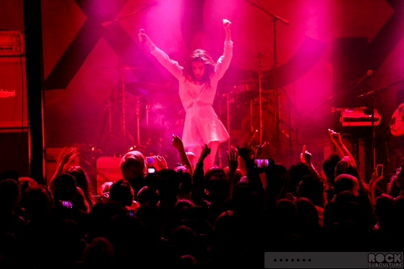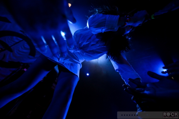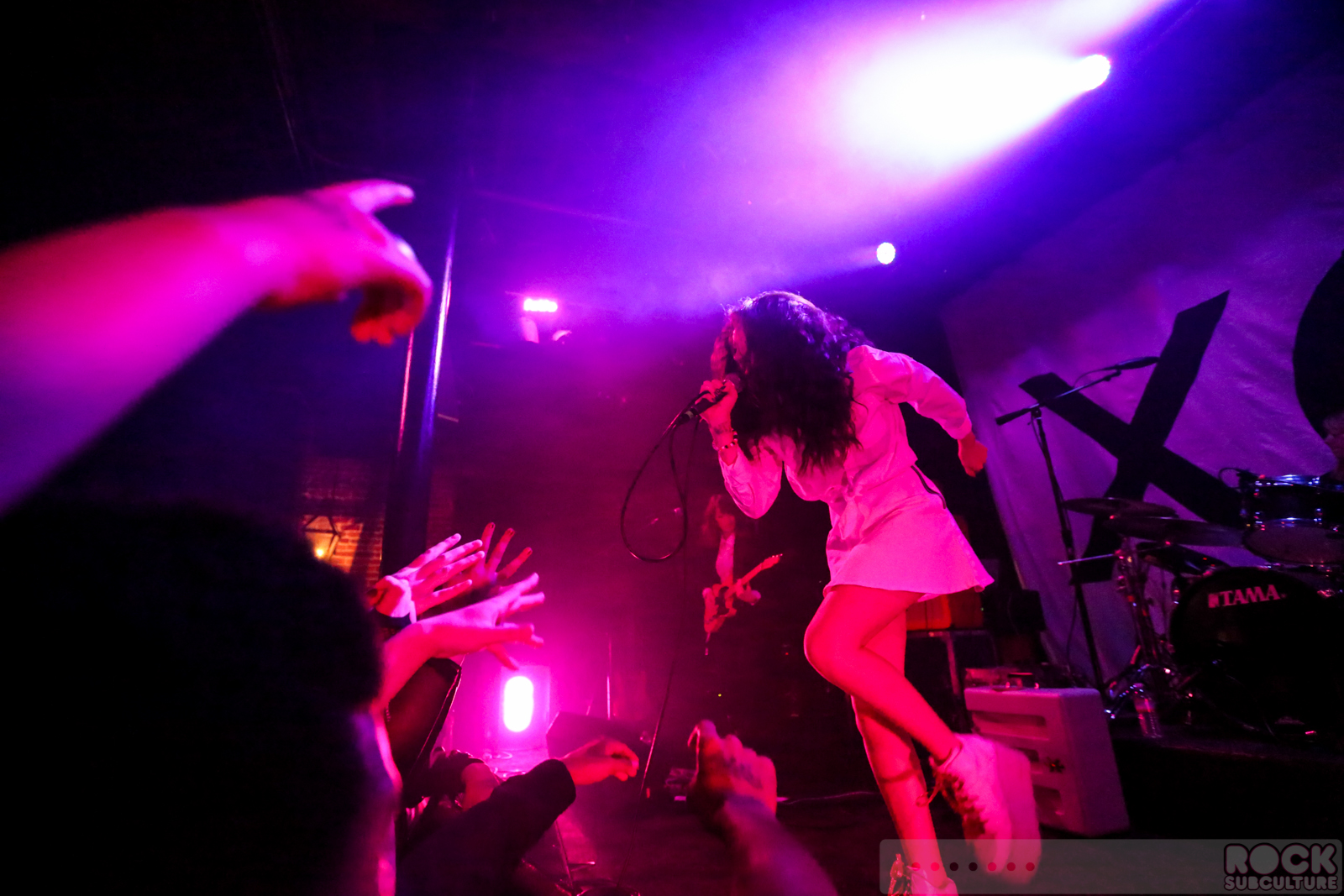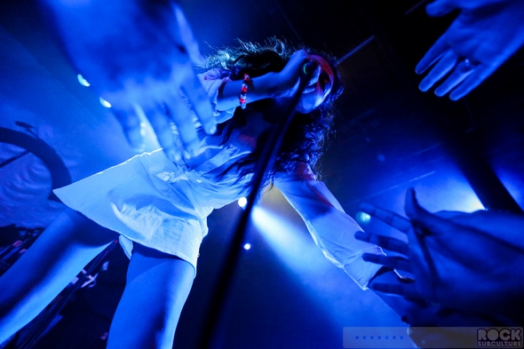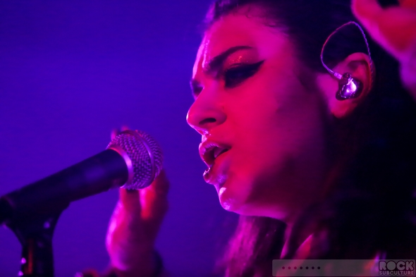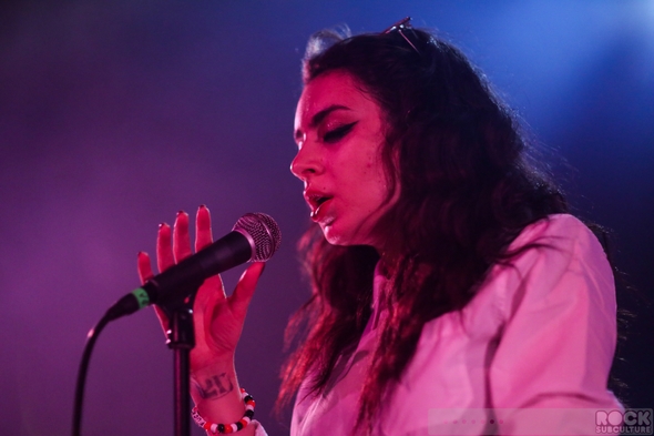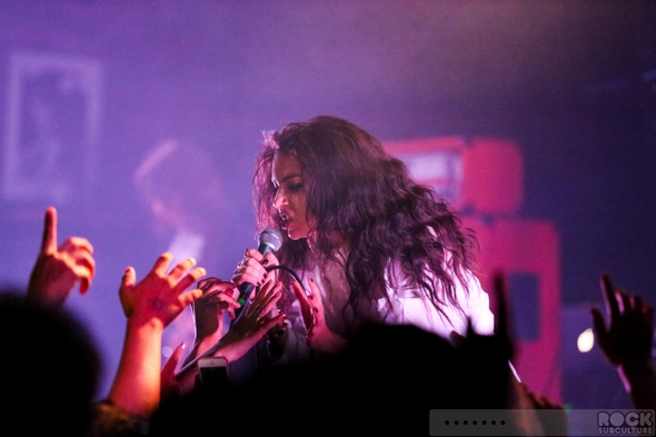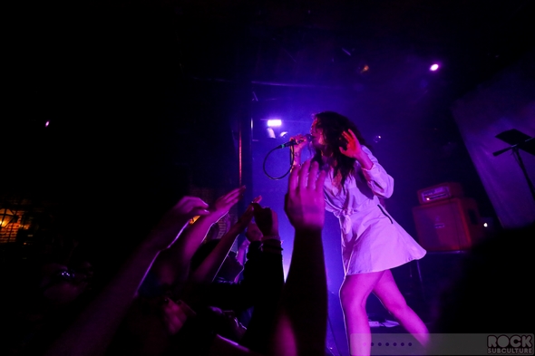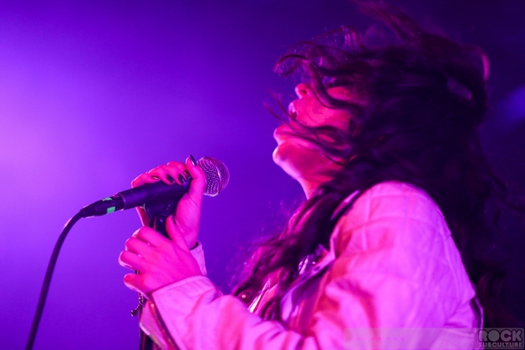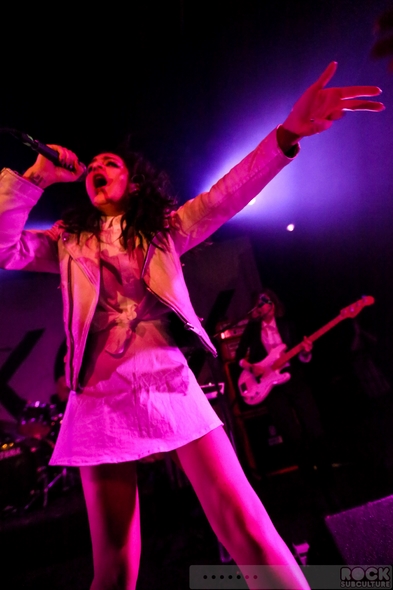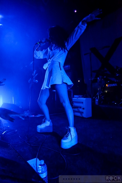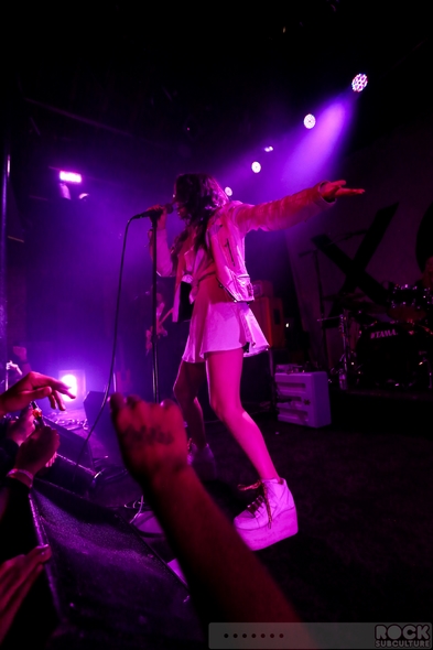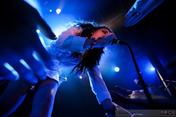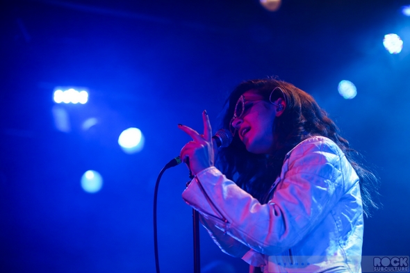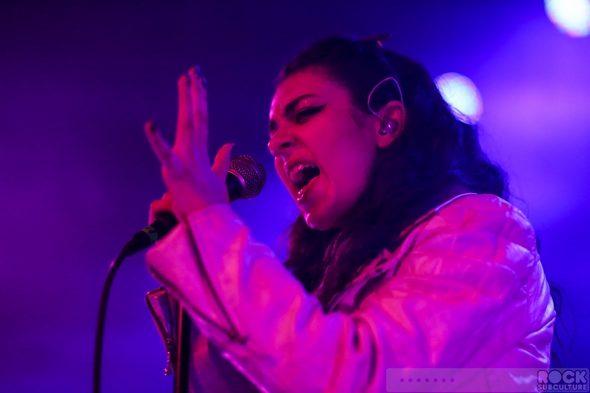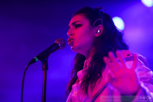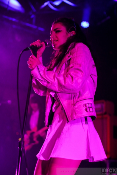 Charli XCX’s first U.S. headlining tour kicked off this past week, making an early stop in San Francisco at Slim’s last night to a dedicated and enthusiastic young crowd. The high energy evening kicked off with opening sets by LIZ and Kitten, providing a showcase of music with three young women fronting acts with three different styles of music. While Charli has been making music and performing going back several years, she broke much wider into the pop culture consciousness in the past year with Icona Pop’s “I Love It”, which she wrote and also provided vocals to in the hit pop song. Her own music, off her debut album True Romance, is a bit more experimental and darker by contrast, which is why she gave the song to the synthpop Swedish duo for their own album. Charli has had a productive time since I last saw her opening for Santigold in the Summer of 2012, having toured with Coldplay, Paramore, Marina and the Diamonds, as well as put out a lot of new music and music videos like the recently released “SuperLove“. She is definitely one to continue to watch as she forges her own unique path through the music industry. She put on a great show last night and really seems to have grown into having a real command on the stage (with new band in tow) and has inspired and sparked the imagination of a generation of fans.