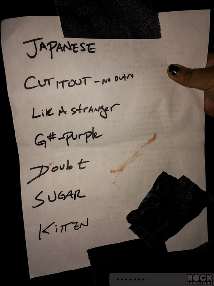 Below is a photo of the (bloody!) set list from their part of the concert:
