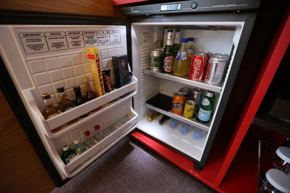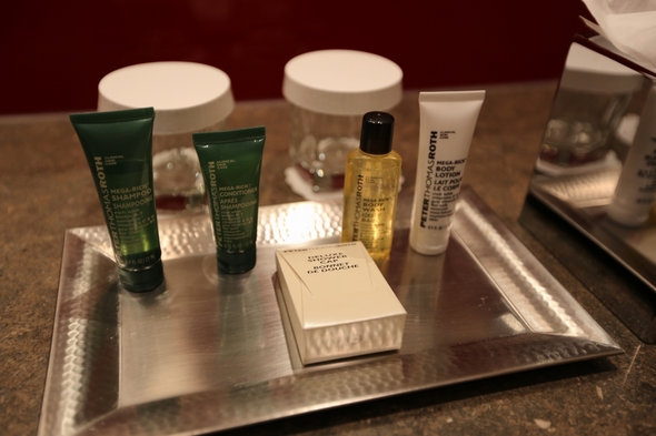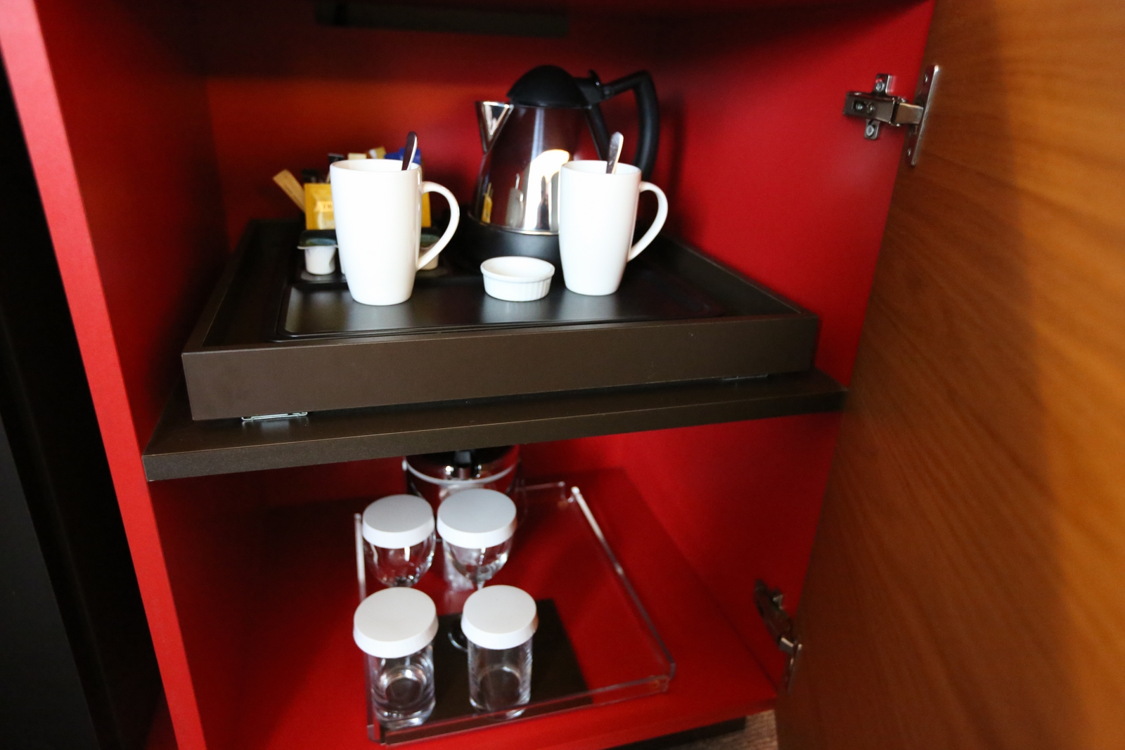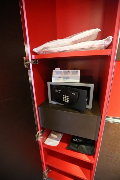 There are a number of other in-room amenities, including a small fridge – though mostly stocked at a pay-per-use system, there is a small space for your own things. There is also a coffee/hot water maker and some dishes and glasses. There is also an electronic safe in the room, just large enough to accommodate a 15.4″ laptop and other items on top (if you place it in at an angle).