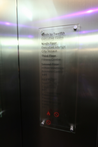 There is an awesome executive lounge on the 9th floor with an outdoor balcony with high tables and chairs with awesome views, and in inside area with couches and dining areas. There is a buffet breakfast most of the morning, wine, cheese and crackers, and appetizers in the evening, and other goodies. I had access to this as a Hilton Gold member (all gratis), but am not sure of the availability/cost, if any, for non members. There are also a few computers to use here, and a printer (though if you need to print off your own system, make sure to bring a USB card – they weren’t compatible with SD cards). This was a fantastic amenity though; can’t recommend it enough.
