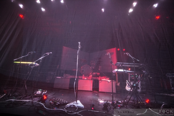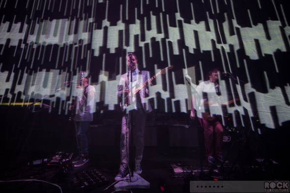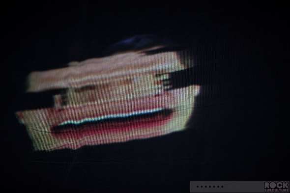 With last night’s show at The Assembly Music Hall, the first two songs were played behind a white screen draped across the front of the stage, upon which videos and images were projected in front of the band members.