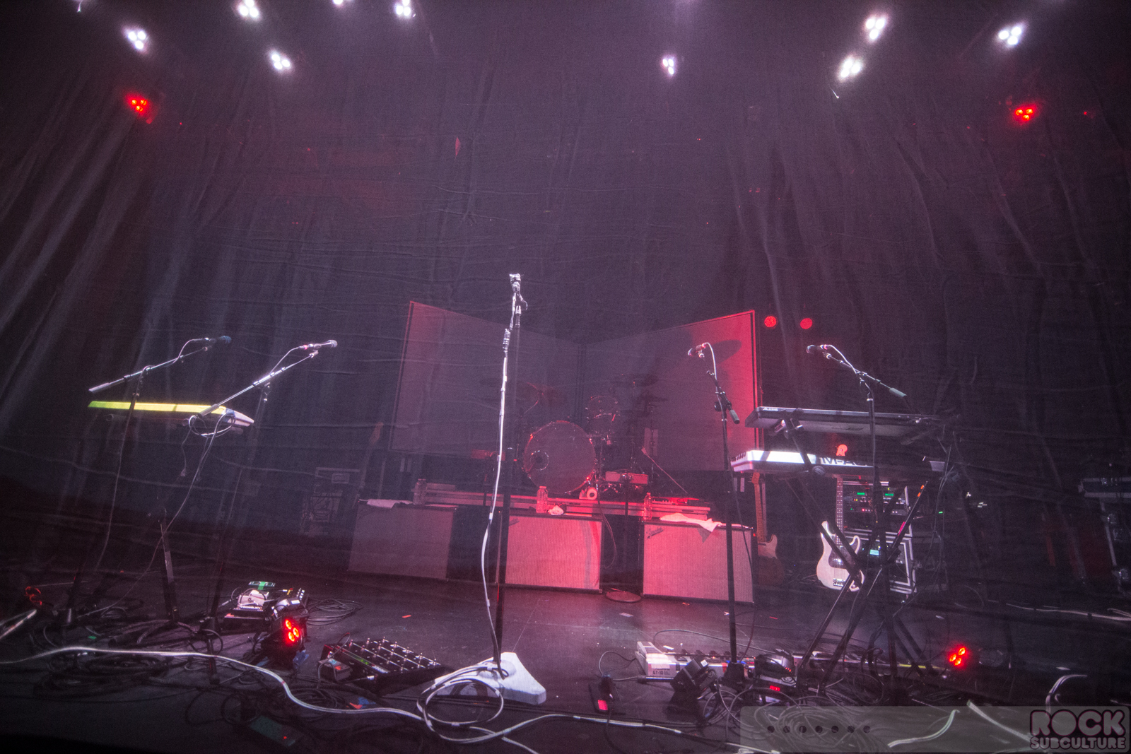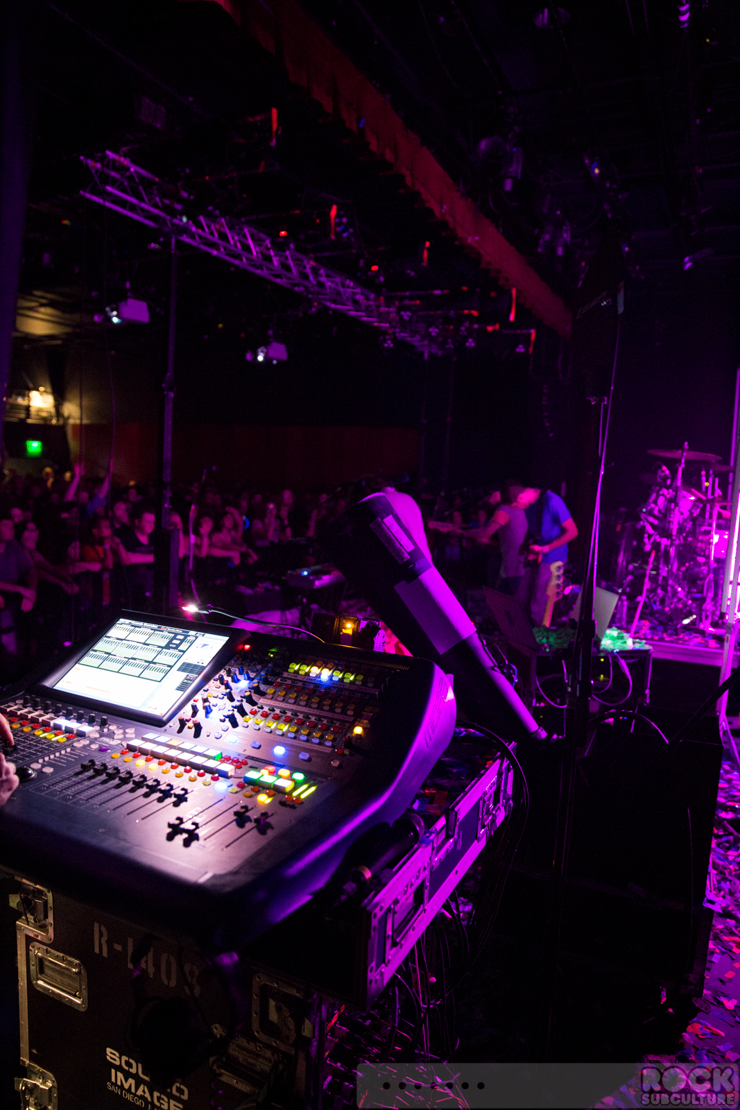 The last show I saw there was The Fixx, and the layout entailed tables and chairs and an open floor. I was brought in pre-doors to take a look around for this show last night, and it was set up completely different. What initially threw me was the barricade down the center of the room, bisecting it. This was done to create a drinking/21+ side and a non-drinking (under 21) side. This was actually pretty cool – I’d never seen this before, but funny enough, leading up to this show, I saw a forum thread the other day from younger fans feeling locked out of the tour in certain cities as they were being held at 21+ venues. This was a pretty creative solution.
