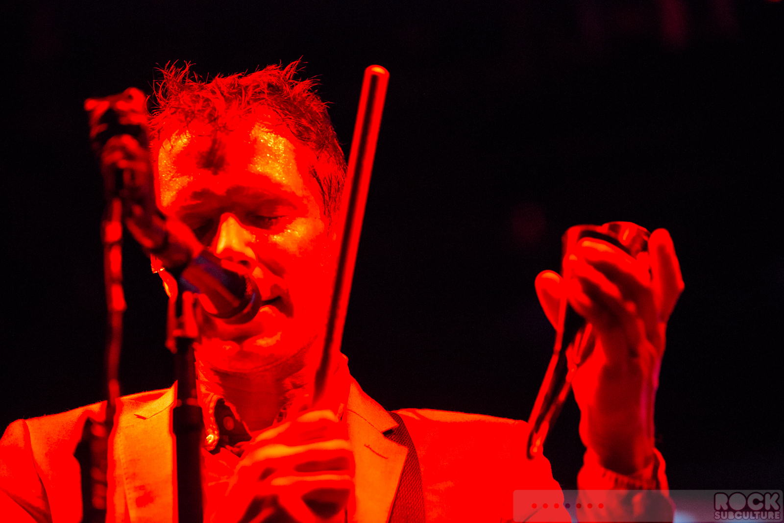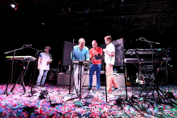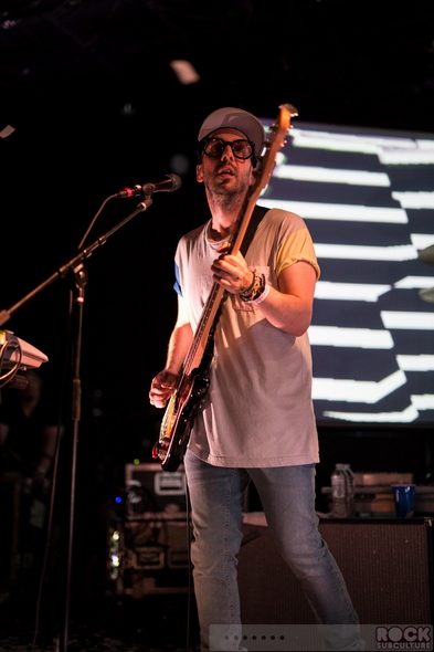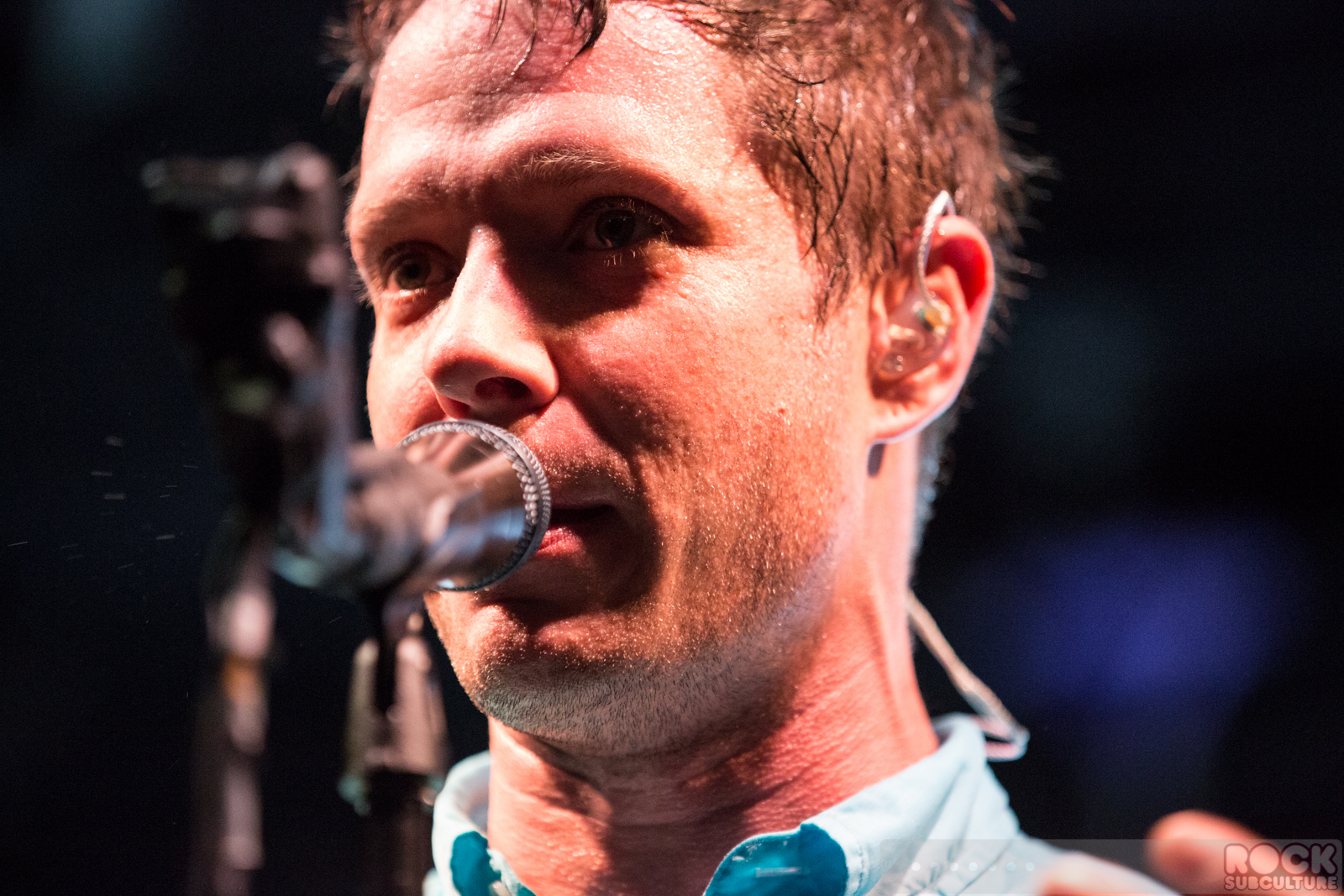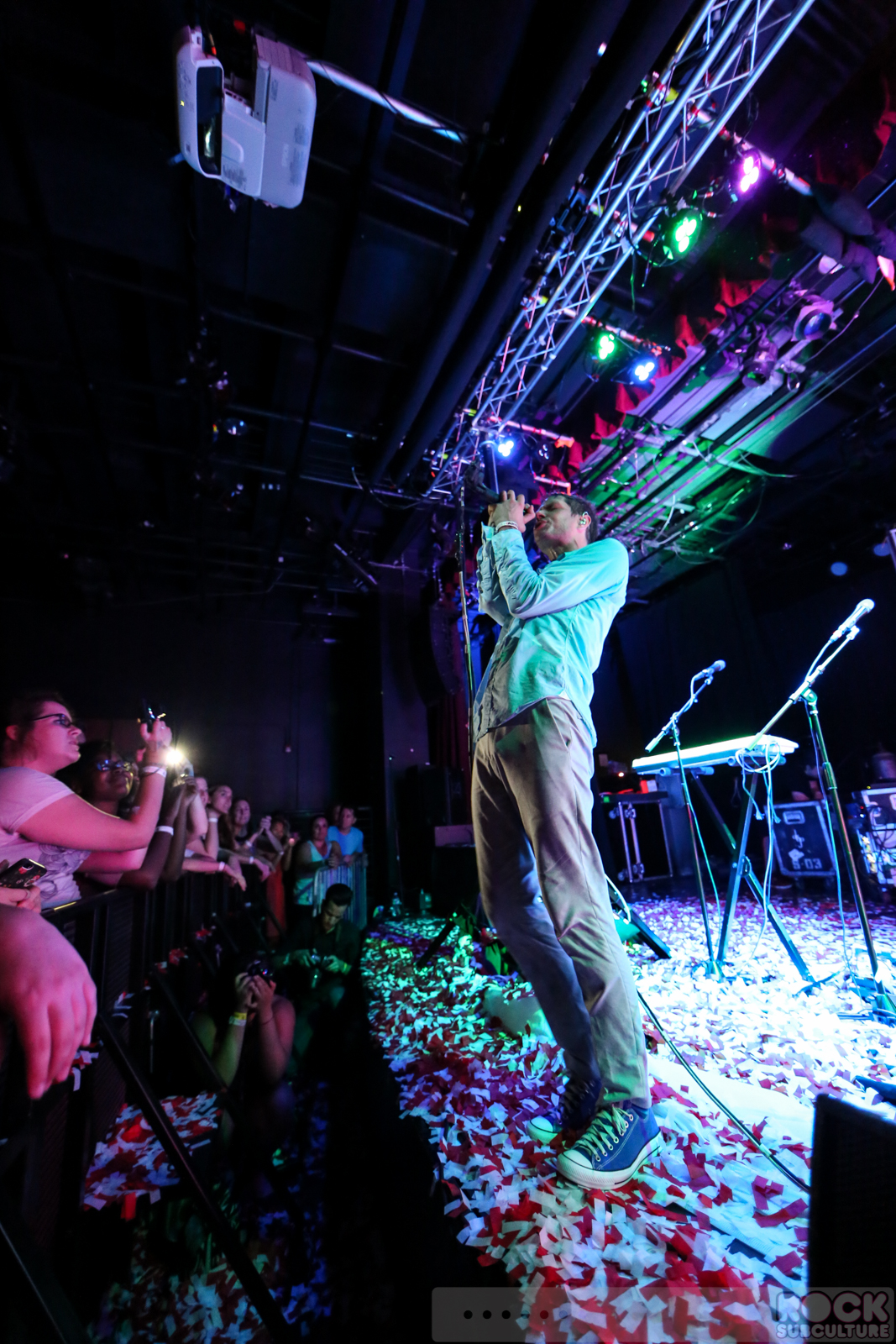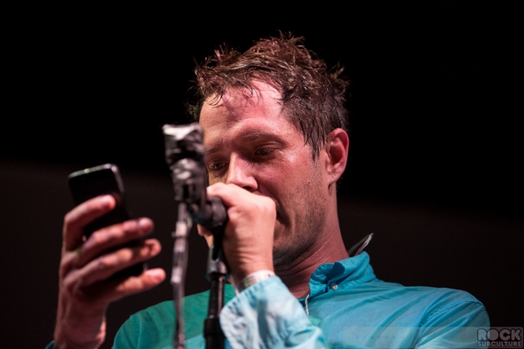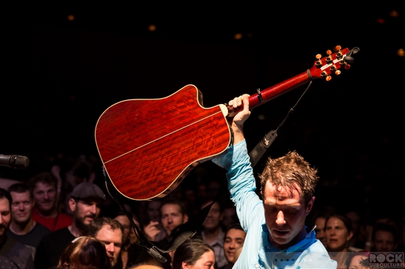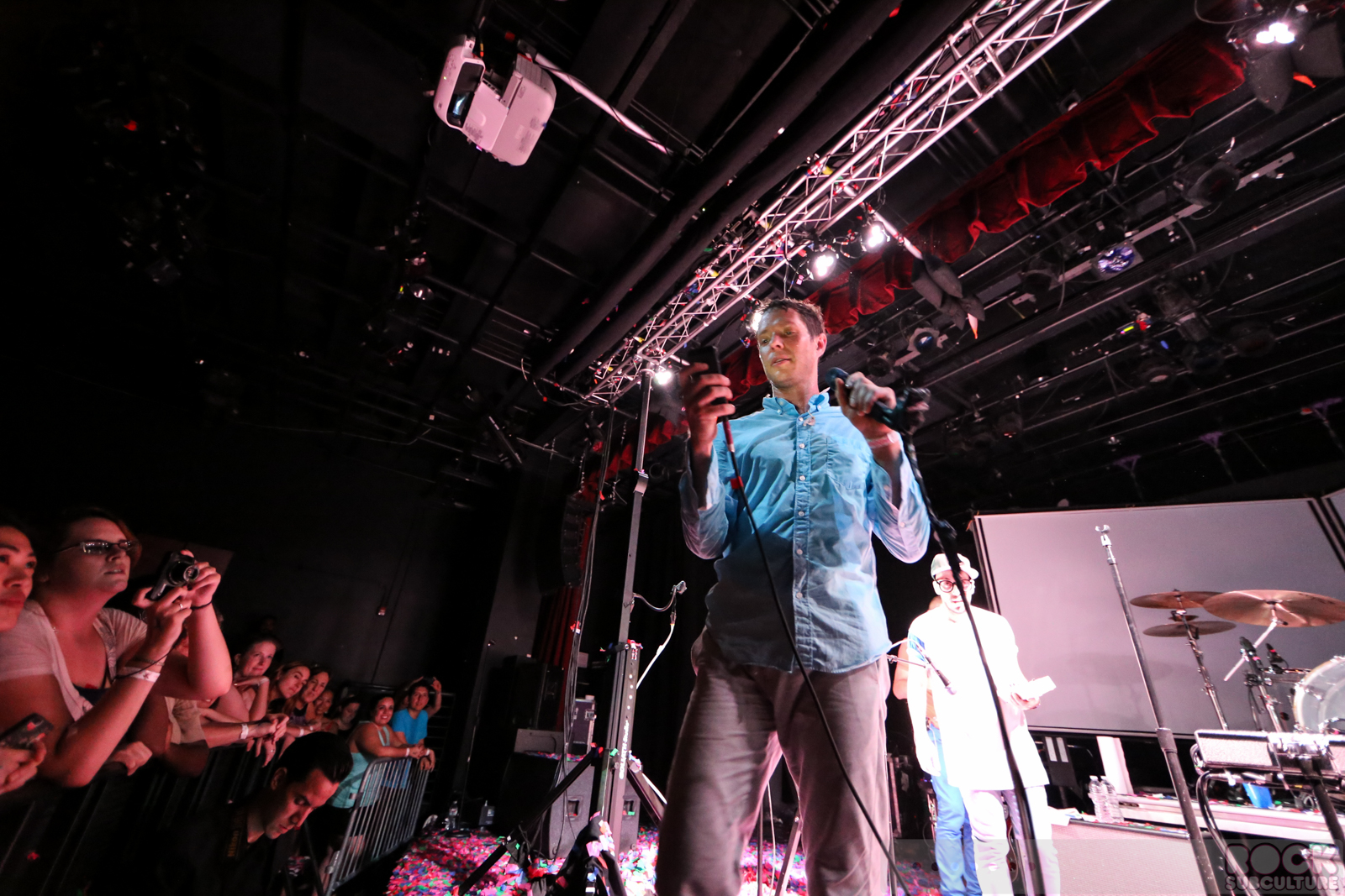 “But the problem is, it’s a piece of shit… so things like the little thing, that goes on here… the plastic thing that keeps you from slicing your fucking finger in half? That fell off in the middle of that song…” A post song, play by play recap by Damien Kulash of OK Go, talking about how part of his favorite guitar (purchased at a pawn shop in New Orleans) fell off and how he waited for the right break in singing to pick it up amid a floor covered in confetti… and for some reason decided to put it in his mouth for the rest of the song. Quirky, funny, and entertaining… an OK Go show would probably be worth the price of admission even if they didn’t play any music at all, as the between-song banter was all quite amusing on its own. But they did put on an impressive showcase of music at Assembly Music Hall in Sacramento… kicking off their 2014 tour that culminates in the release of Hungry Ghosts, their fourth studio album in October.