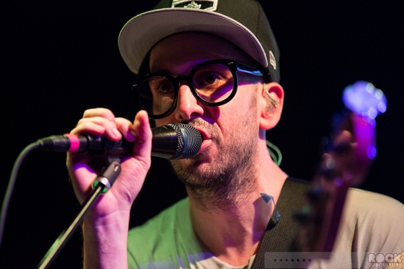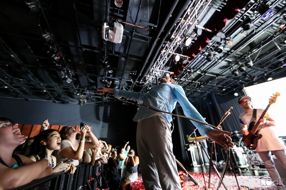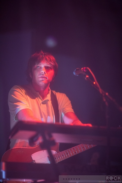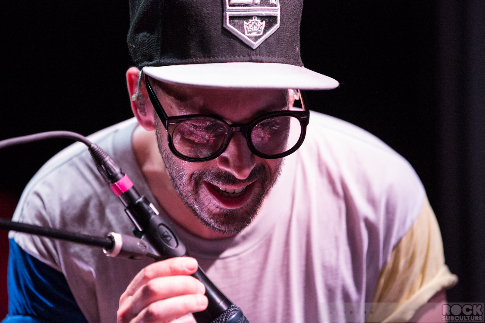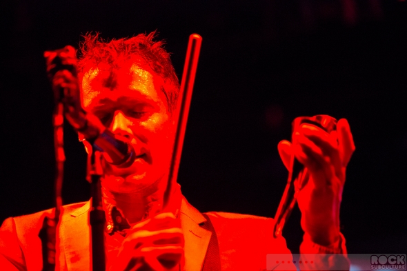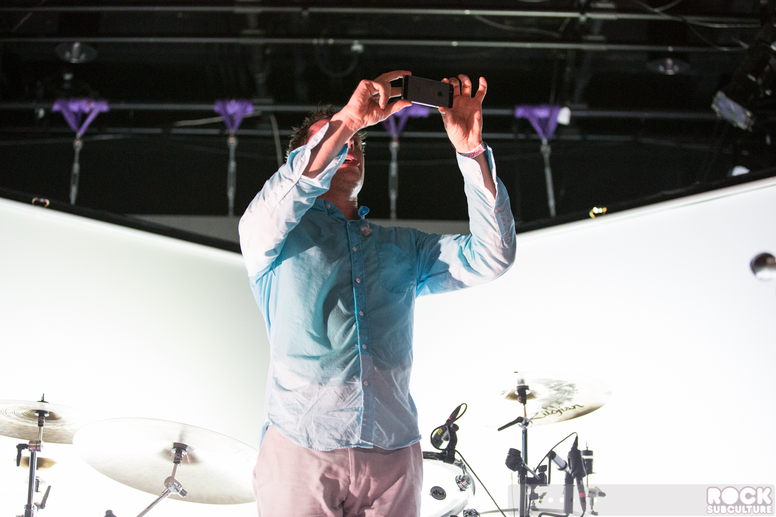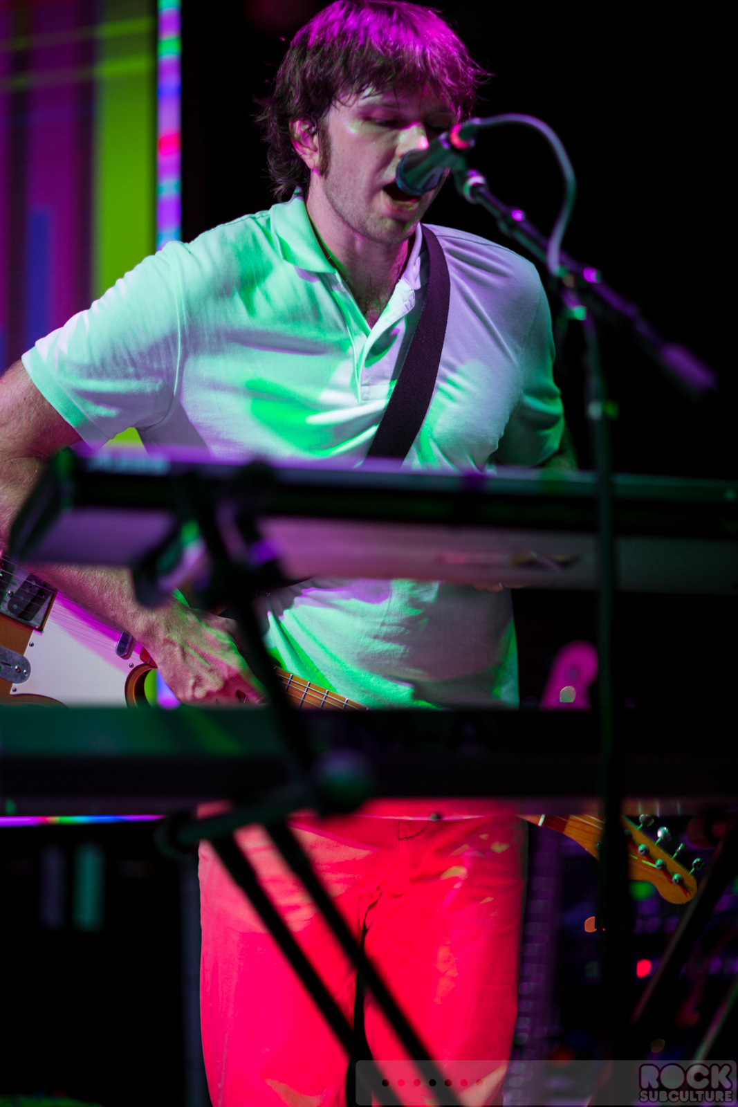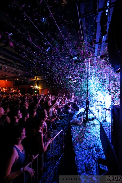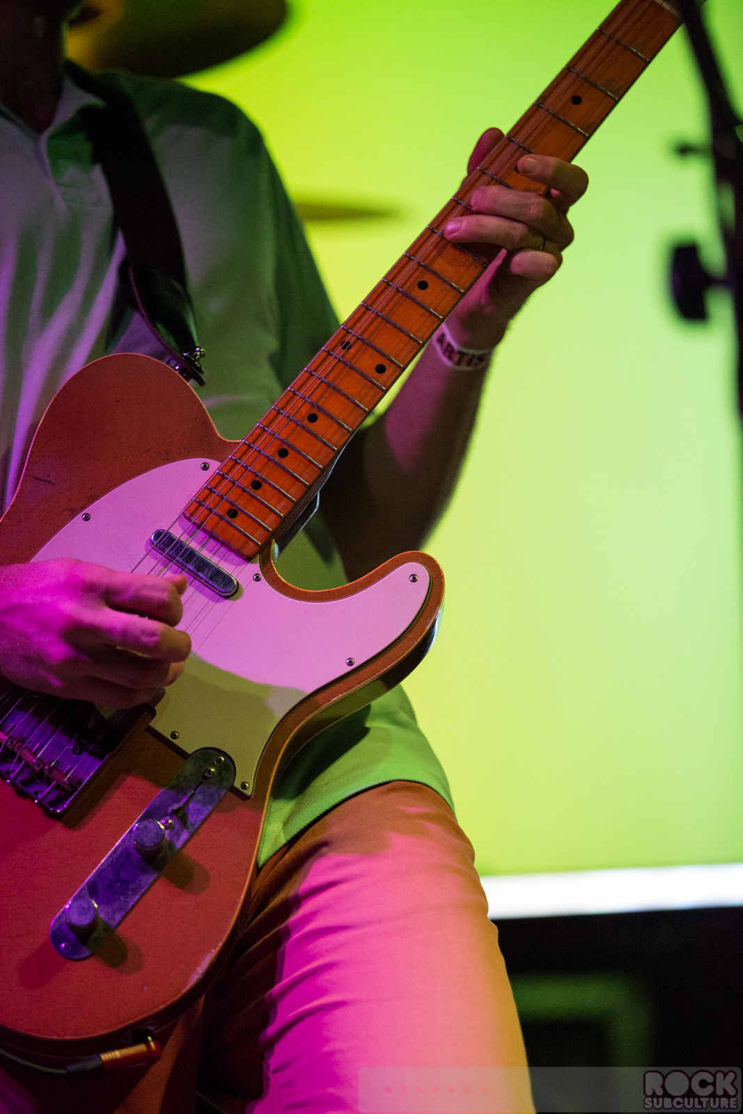“But the problem is, it’s a piece of shit… so things like the little thing, that goes on here… the plastic thing that keeps you from slicing your fucking finger in half? That fell off in the middle of that song…” A post song, play by play recap by Damien Kulash of OK Go, talking about how part of his favorite guitar (purchased at a pawn shop in New Orleans) fell off and how he waited for the right break in singing to pick it up amid a floor covered in confetti… and for some reason decided to put it in his mouth for the rest of the song. Quirky, funny, and entertaining… an OK Go show would probably be worth the price of admission even if they didn’t play any music at all, as the between-song banter was all quite amusing on its own. But they did put on an impressive showcase of music at Assembly Music Hall in Sacramento… kicking off their 2014 tour that culminates in the release of Hungry Ghosts, their fourth studio album in October.