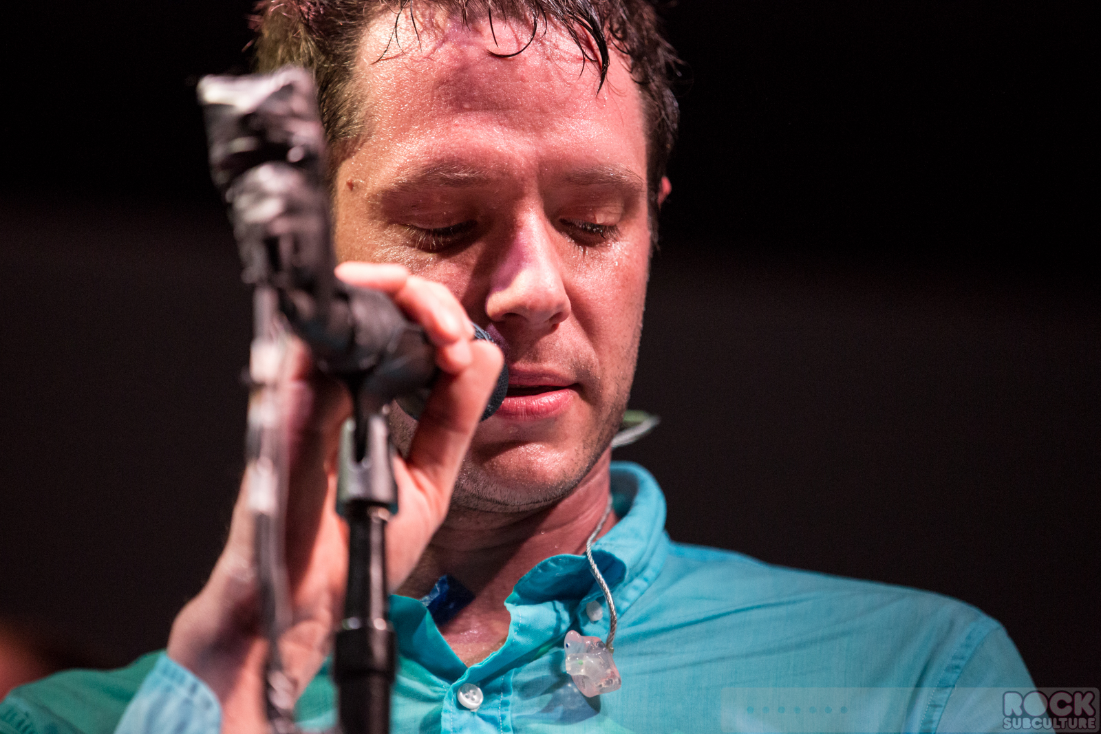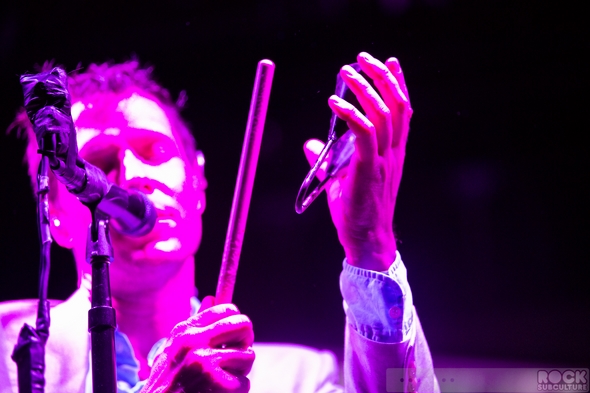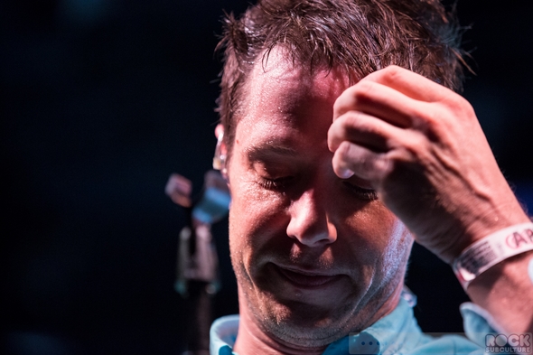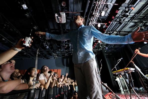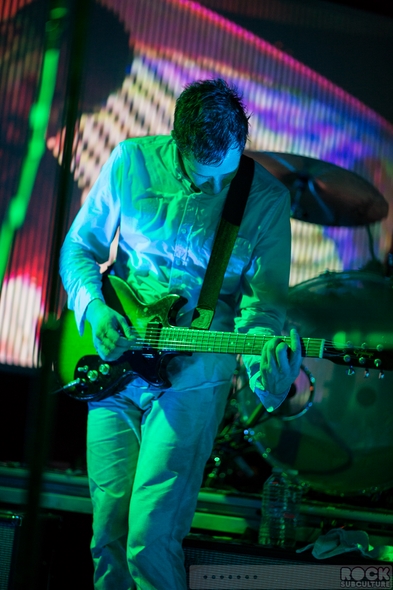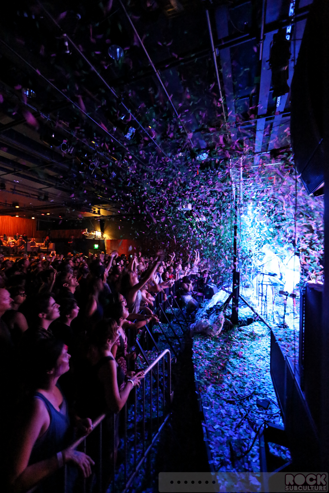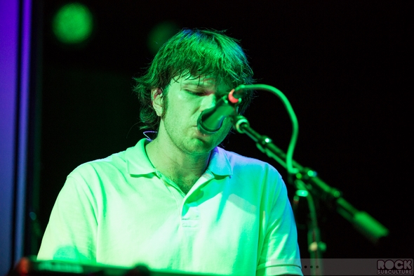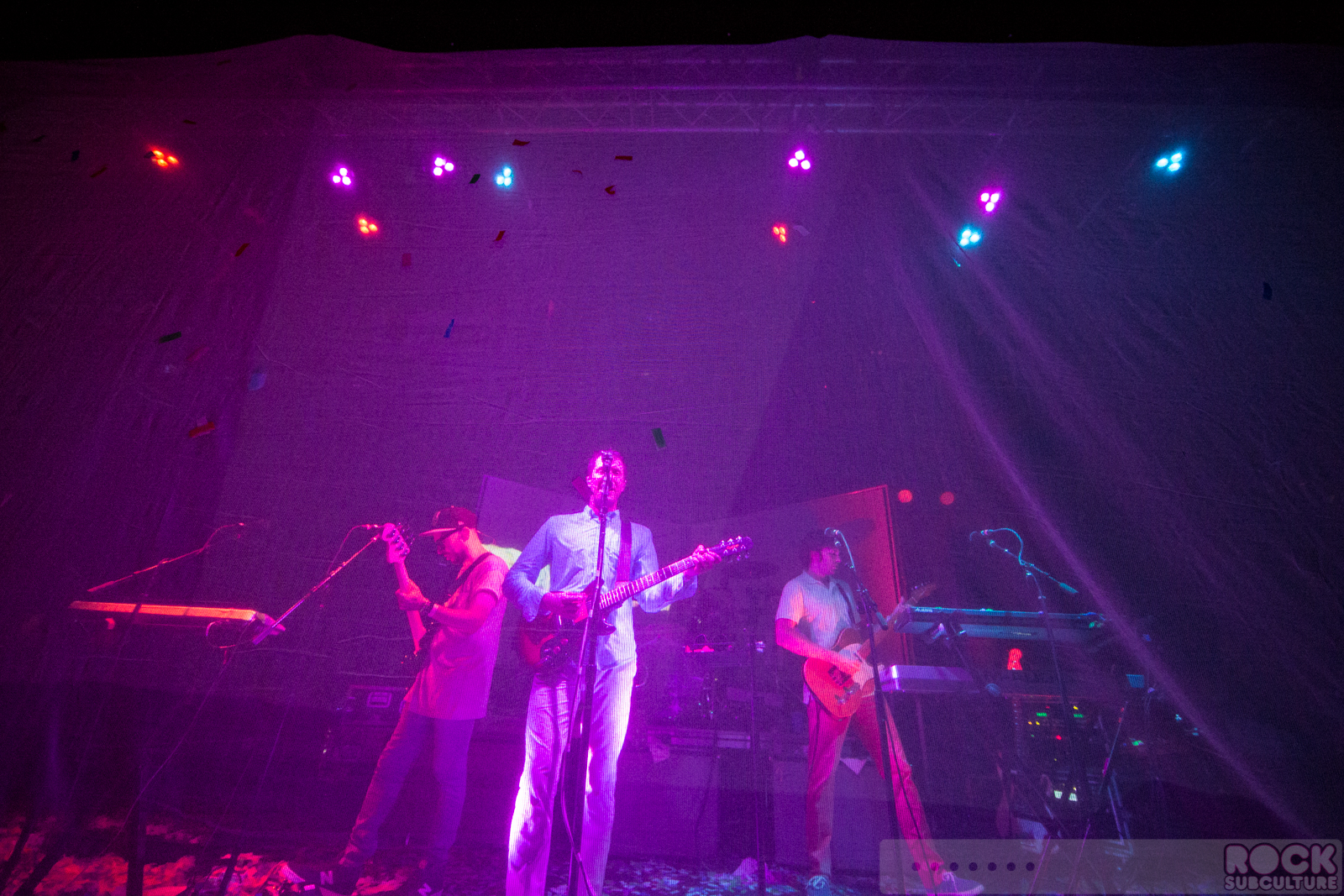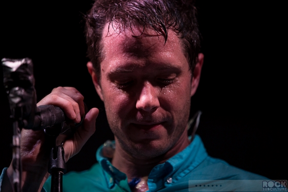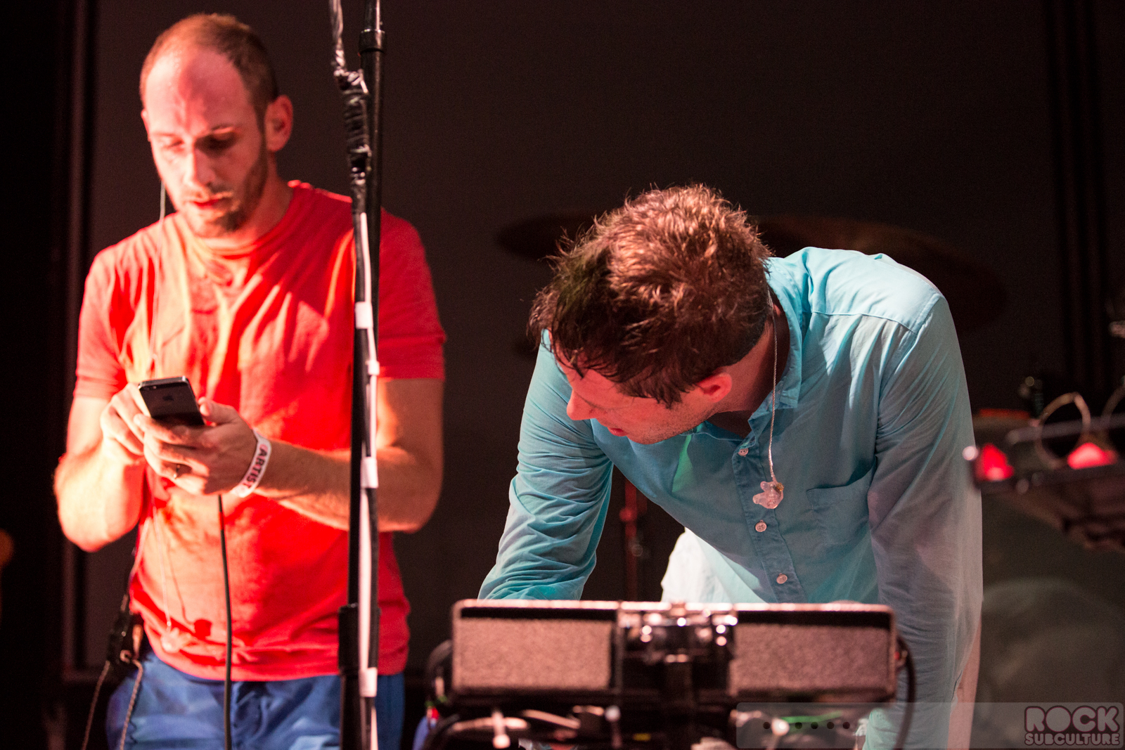 “But the problem is, it’s a piece of shit… so things like the little thing, that goes on here… the plastic thing that keeps you from slicing your fucking finger in half? That fell off in the middle of that song…” A post song, play by play recap by Damien Kulash of OK Go, talking about how part of his favorite guitar (purchased at a pawn shop in New Orleans) fell off and how he waited for the right break in singing to pick it up amid a floor covered in confetti… and for some reason decided to put it in his mouth for the rest of the song. Quirky, funny, and entertaining… an OK Go show would probably be worth the price of admission even if they didn’t play any music at all, as the between-song banter was all quite amusing on its own. But they did put on an impressive showcase of music at Assembly Music Hall in Sacramento… kicking off their 2014 tour that culminates in the release of Hungry Ghosts, their fourth studio album in October.