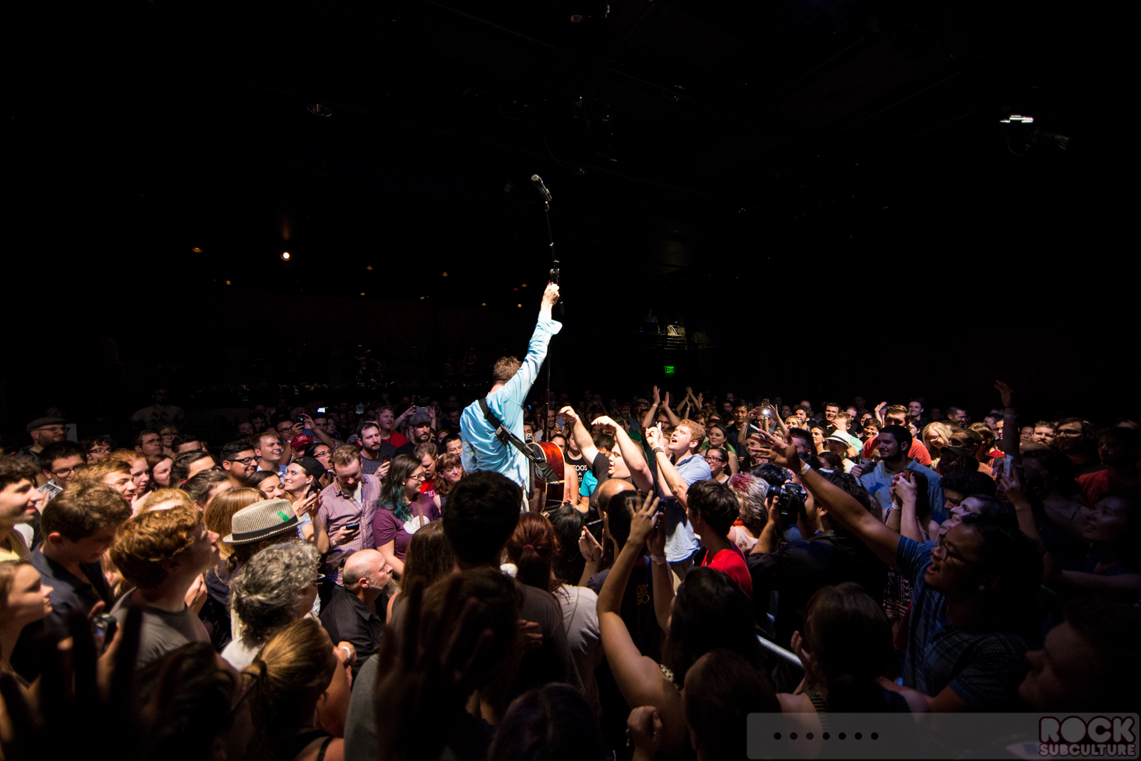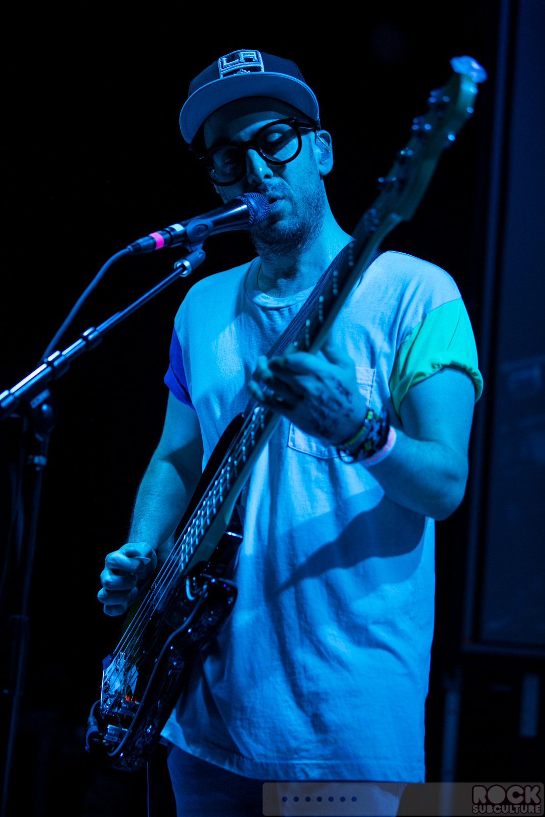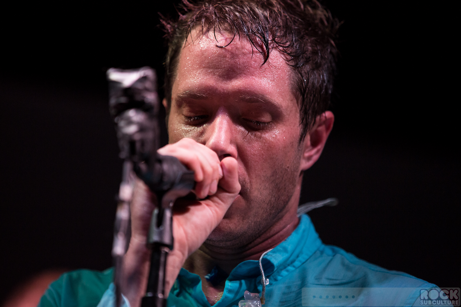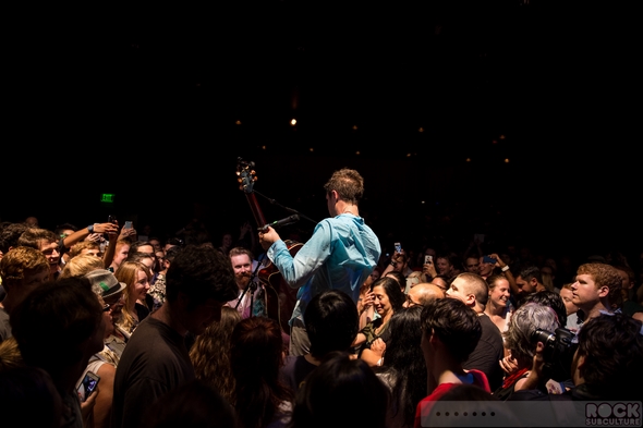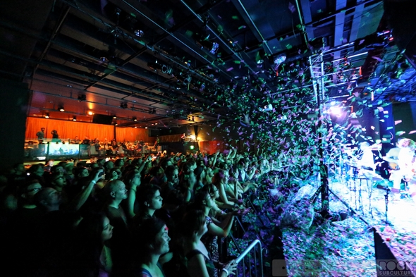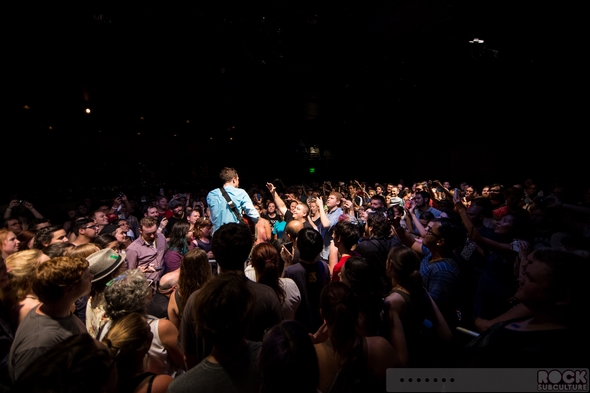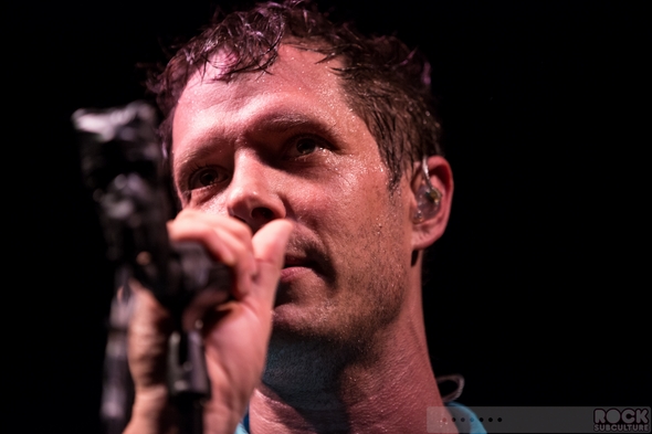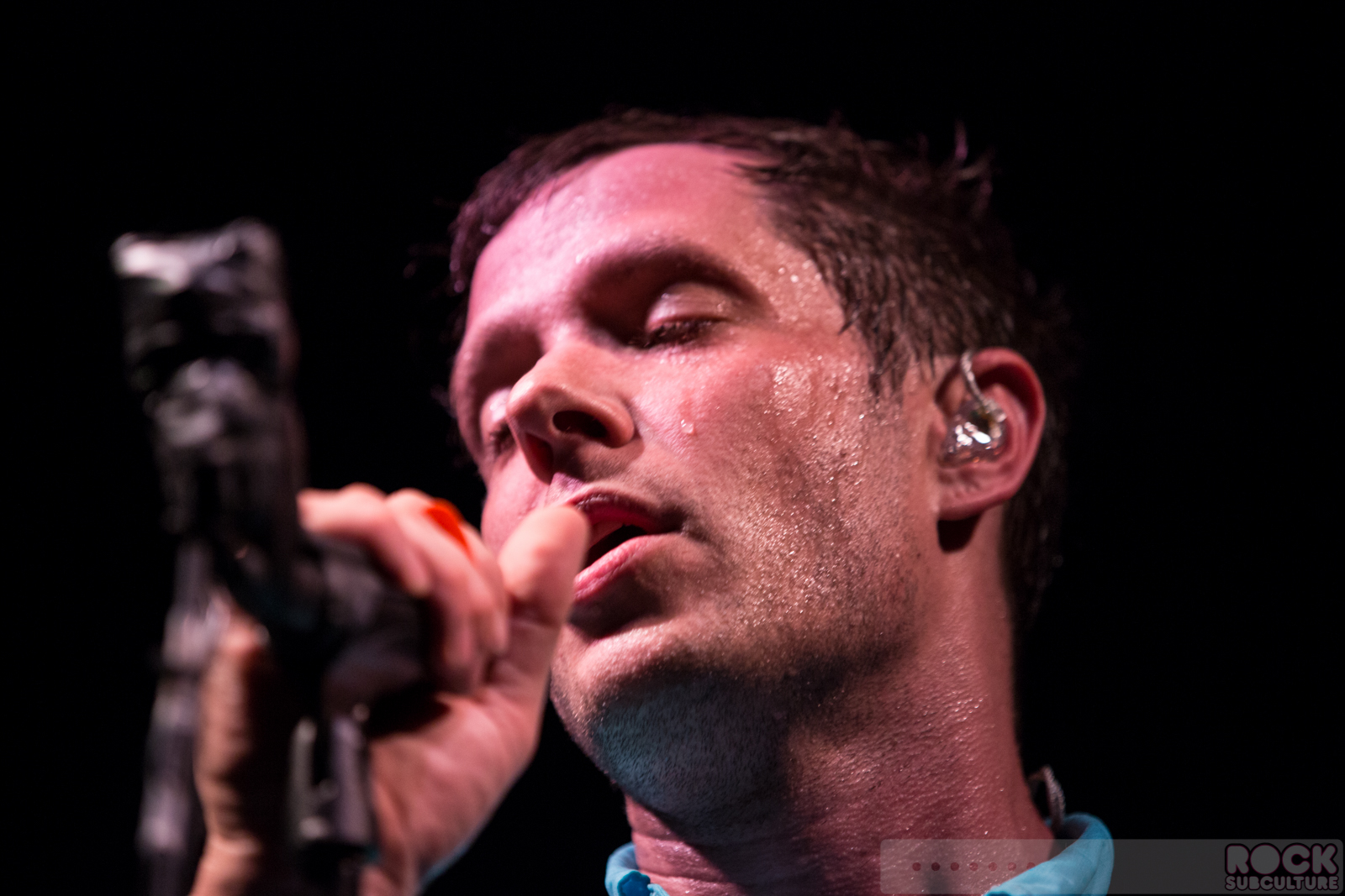 “But the problem is, it’s a piece of shit… so things like the little thing, that goes on here… the plastic thing that keeps you from slicing your fucking finger in half? That fell off in the middle of that song…” A post song, play by play recap by Damien Kulash of OK Go, talking about how part of his favorite guitar (purchased at a pawn shop in New Orleans) fell off and how he waited for the right break in singing to pick it up amid a floor covered in confetti… and for some reason decided to put it in his mouth for the rest of the song. Quirky, funny, and entertaining… an OK Go show would probably be worth the price of admission even if they didn’t play any music at all, as the between-song banter was all quite amusing on its own. But they did put on an impressive showcase of music at Assembly Music Hall in Sacramento… kicking off their 2014 tour that culminates in the release of Hungry Ghosts, their fourth studio album in October.