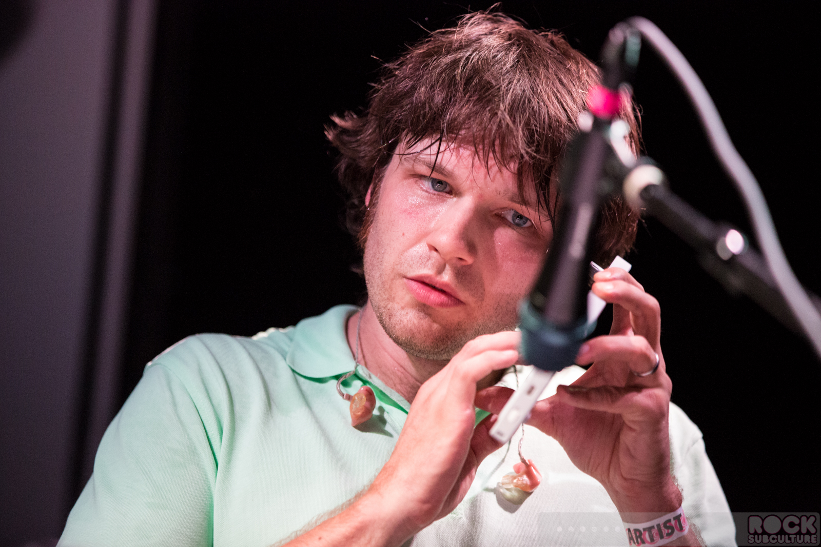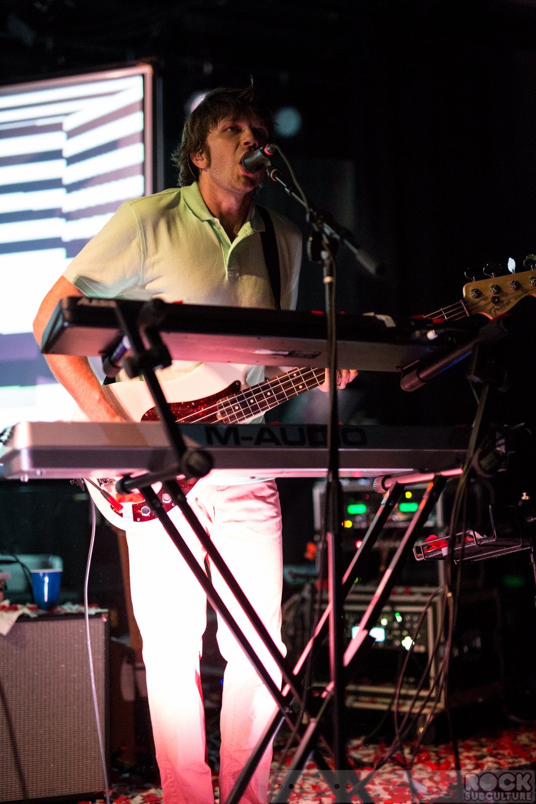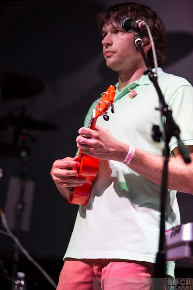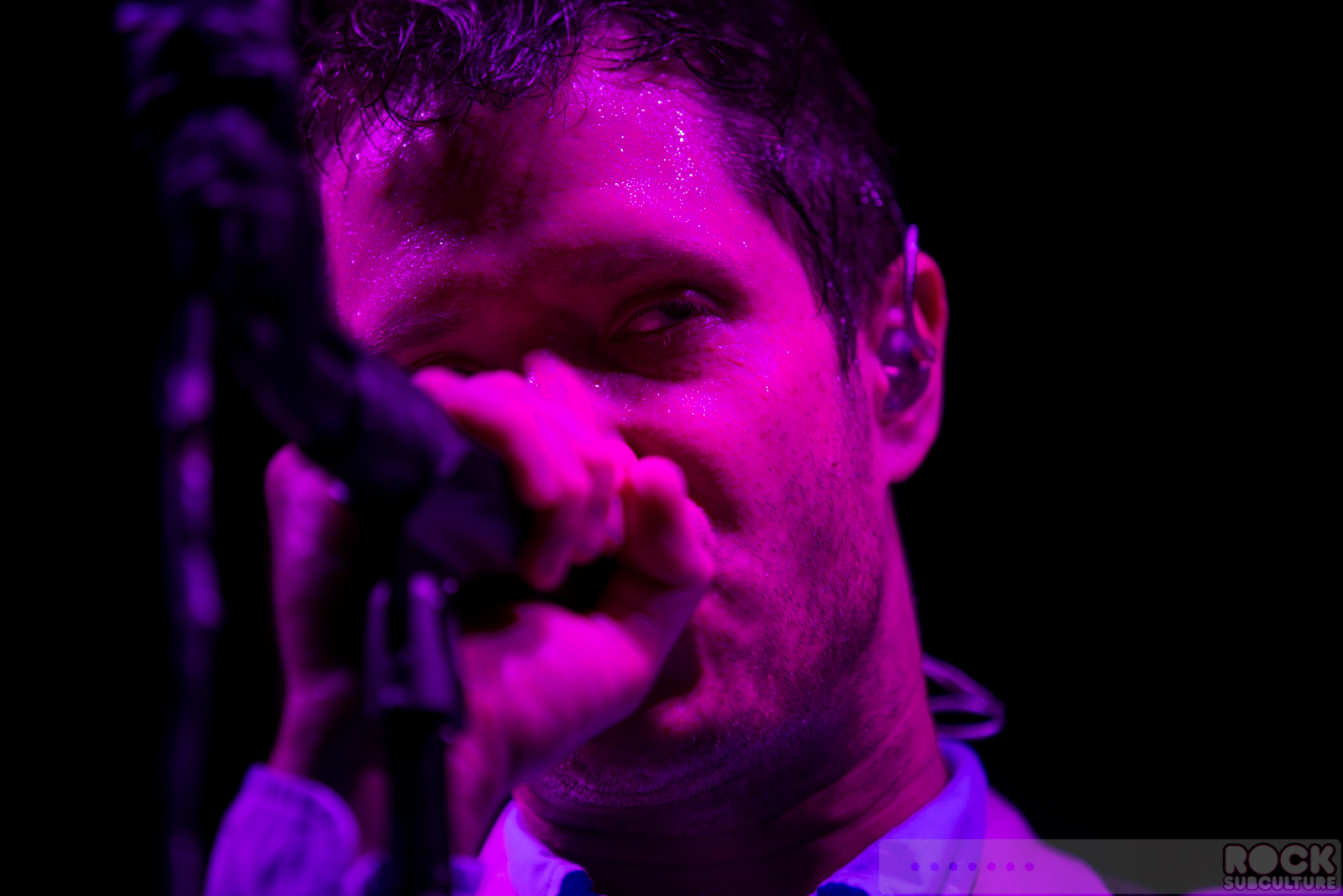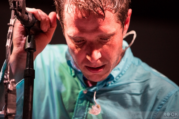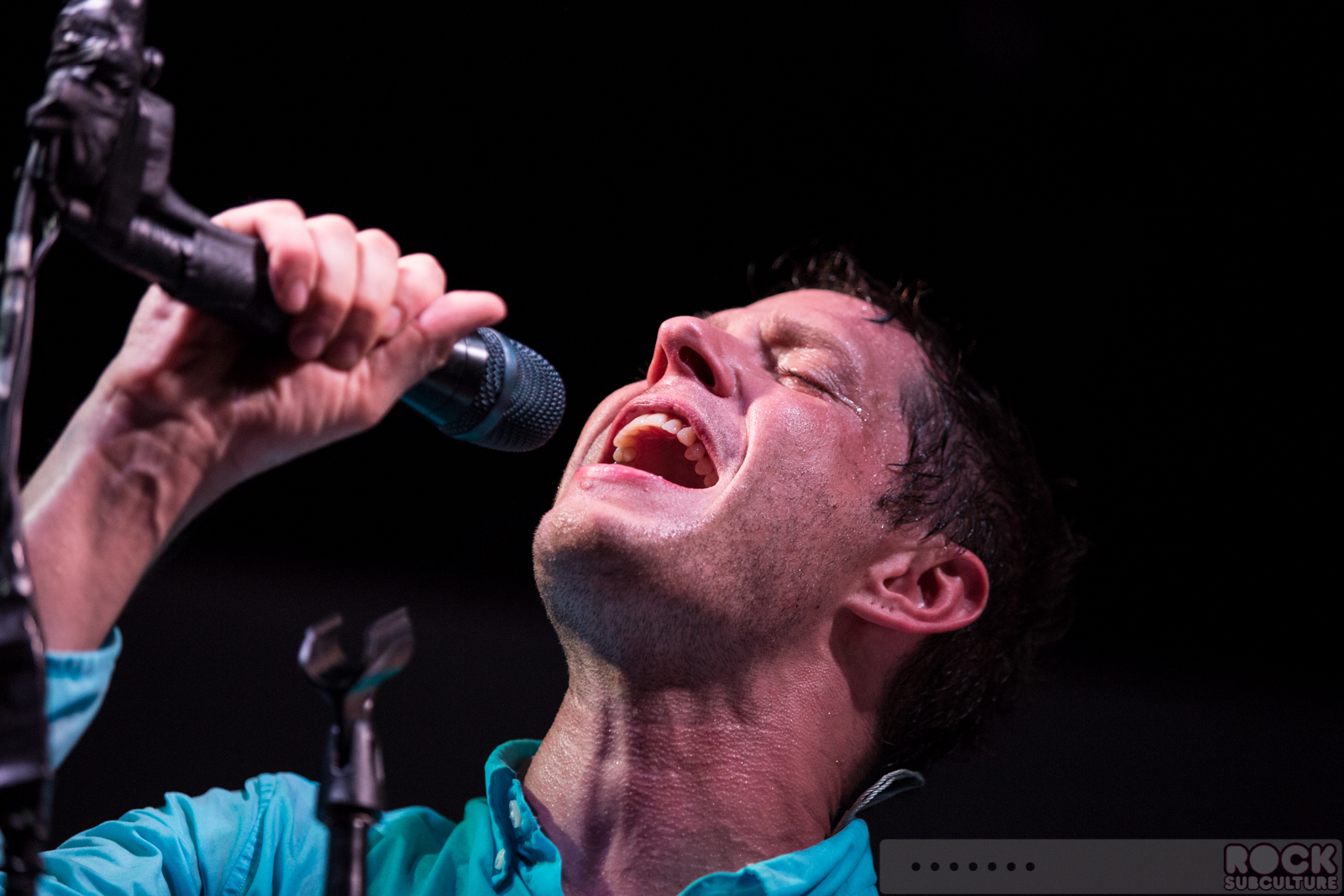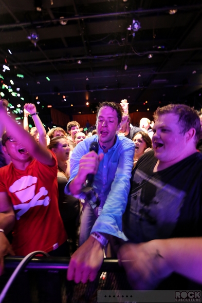 “But the problem is, it’s a piece of shit… so things like the little thing, that goes on here… the plastic thing that keeps you from slicing your fucking finger in half? That fell off in the middle of that song…” A post song, play by play recap by Damien Kulash of OK Go, talking about how part of his favorite guitar (purchased at a pawn shop in New Orleans) fell off and how he waited for the right break in singing to pick it up amid a floor covered in confetti… and for some reason decided to put it in his mouth for the rest of the song. Quirky, funny, and entertaining… an OK Go show would probably be worth the price of admission even if they didn’t play any music at all, as the between-song banter was all quite amusing on its own. But they did put on an impressive showcase of music at Assembly Music Hall in Sacramento… kicking off their 2014 tour that culminates in the release of Hungry Ghosts, their fourth studio album in October.