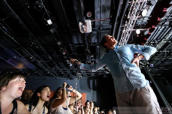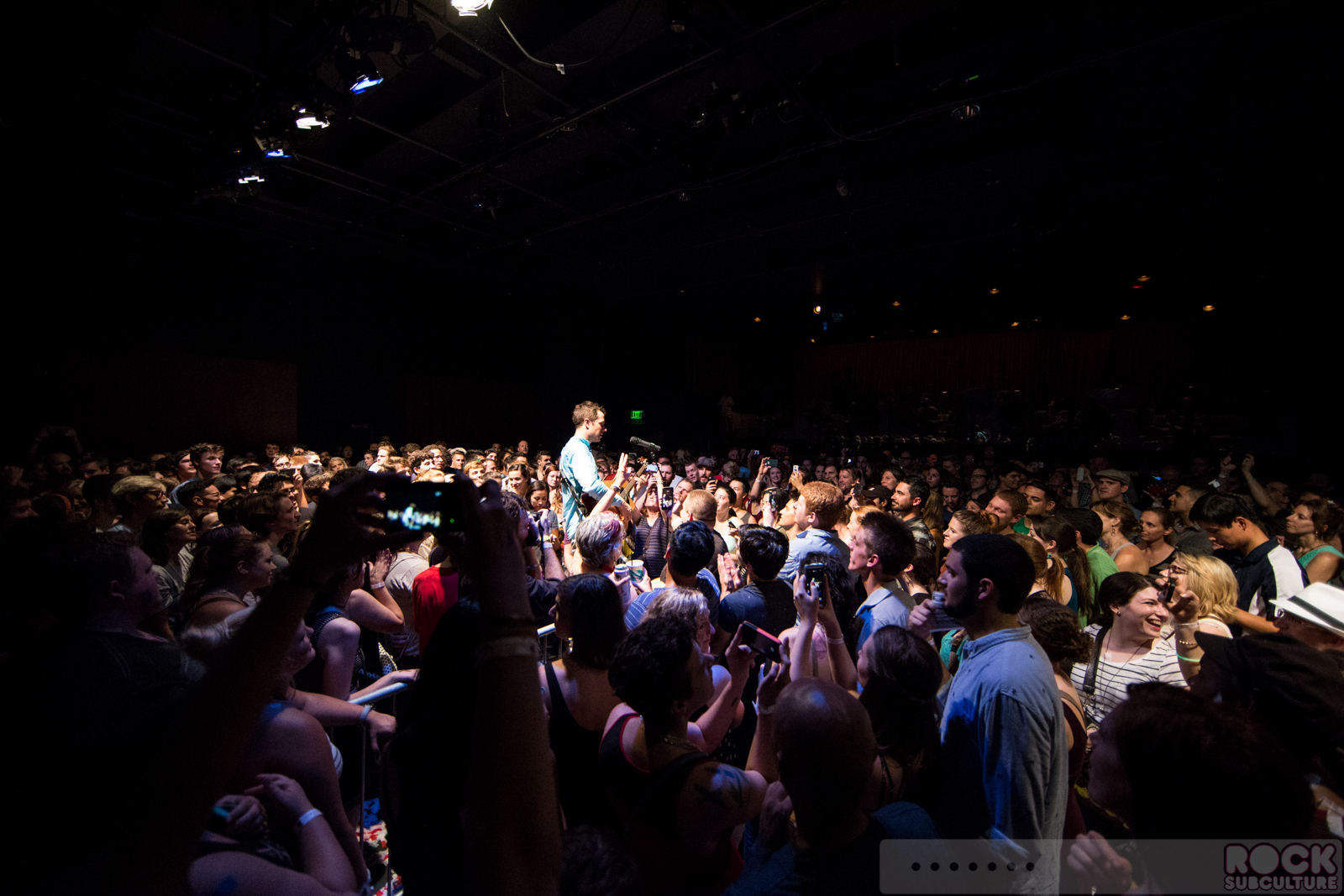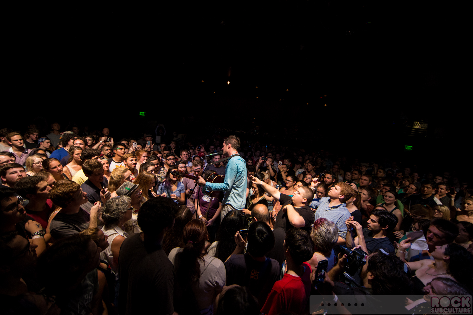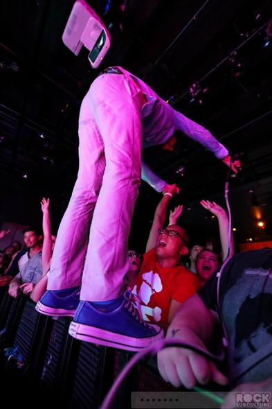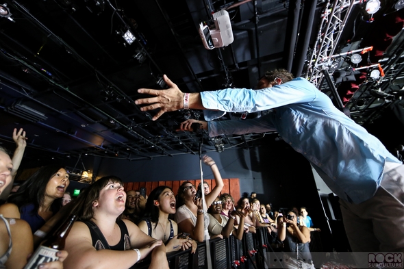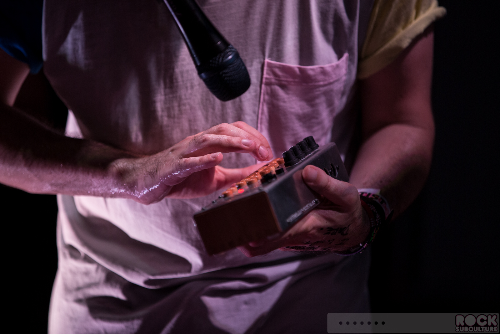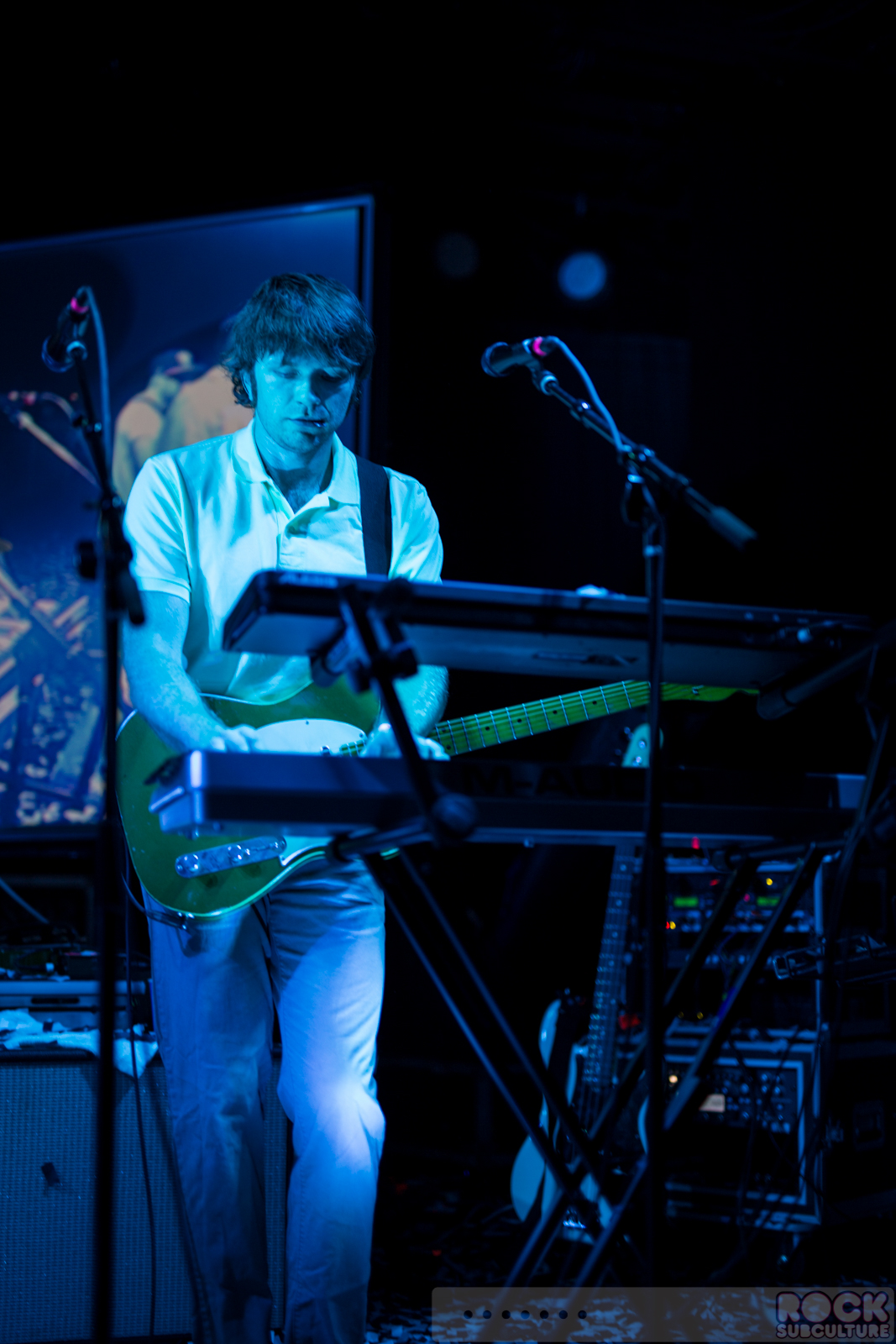 “But the problem is, it’s a piece of shit… so things like the little thing, that goes on here… the plastic thing that keeps you from slicing your fucking finger in half? That fell off in the middle of that song…” A post song, play by play recap by Damien Kulash of OK Go, talking about how part of his favorite guitar (purchased at a pawn shop in New Orleans) fell off and how he waited for the right break in singing to pick it up amid a floor covered in confetti… and for some reason decided to put it in his mouth for the rest of the song. Quirky, funny, and entertaining… an OK Go show would probably be worth the price of admission even if they didn’t play any music at all, as the between-song banter was all quite amusing on its own. But they did put on an impressive showcase of music at Assembly Music Hall in Sacramento… kicking off their 2014 tour that culminates in the release of Hungry Ghosts, their fourth studio album in October.