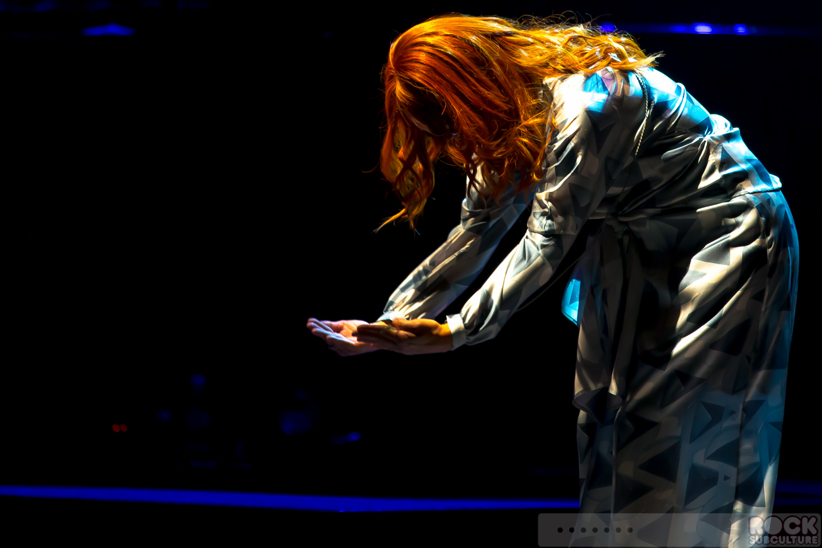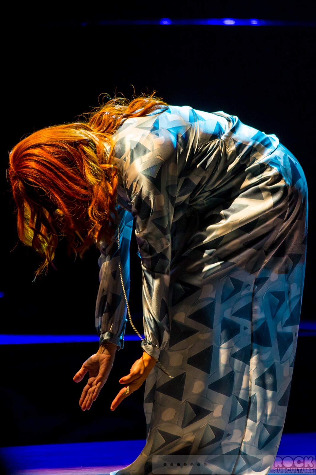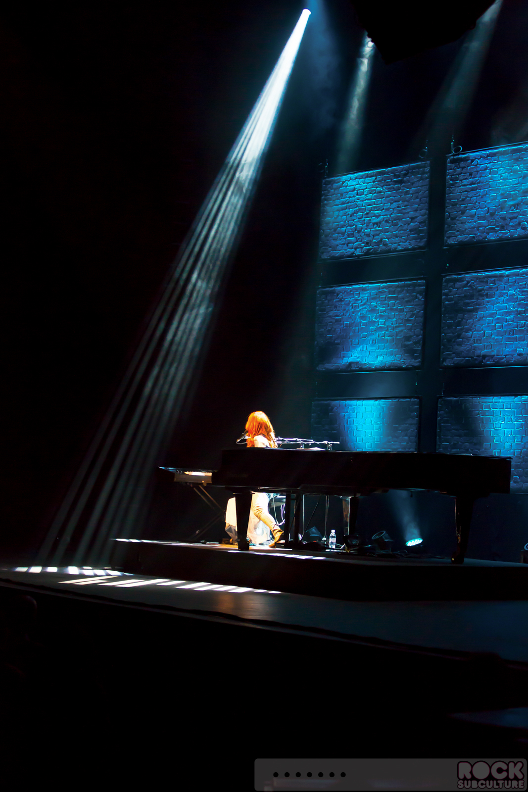“So this is one of your requests… I’ll see if we got this right.” Tori Amos in the “Lizard Lounge” section of her performance at the Paramount Theatre in Oakland last night, wherein on this “Unrepentant Geraldines Tour” she does a few covers suggested by fans. With Monday night’s show, the first was a kind of dark rendition of the Calvin Harris and Rihanna electro-house hit song, “We Found Love”. What? Tori Amos doing “We Found Love”? Yeah, I know the song well, but it took my thought process a few seconds to catch up with the familiar lyrics played out in such a different manner. As I settled into that incredible collision of techno pop and, well, however you might categorize what it is that Tori does, when she does her thing… I started imagining what might be the most amazing cover to hear from her following that. Immediately, I thought of “Tiny Dancer” (it has a special connection with my fiancé and I, and she was seated next to me in the orchestra pit for her first Tori concert)… So after finishing “We Found Love” on her electric keyboard, Tori spun around and found her way to the deeper keys on her Bösendorfer piano and started into the classic Elton John tune. I’ve seen, I would guess, thousands of artists live in concert – that was the first time I’d felt that maybe one read my mind. Very surreal moment, and maybe the coolest moment for me at any Tori Amos concert (and I’ve been to my fair share). She was certainly full of surprises last night, as a fan might see simply from taking a look at the set list, which had songs from her latest, Unrepentant Geraldines, going all the way back to her failed synthpop band, Y Kant Tori Read. With the new album and this current tour, Tori has certainly hit her stride both in the studio and on the road, and she’s always been one of those rare artists that is a master at both.
