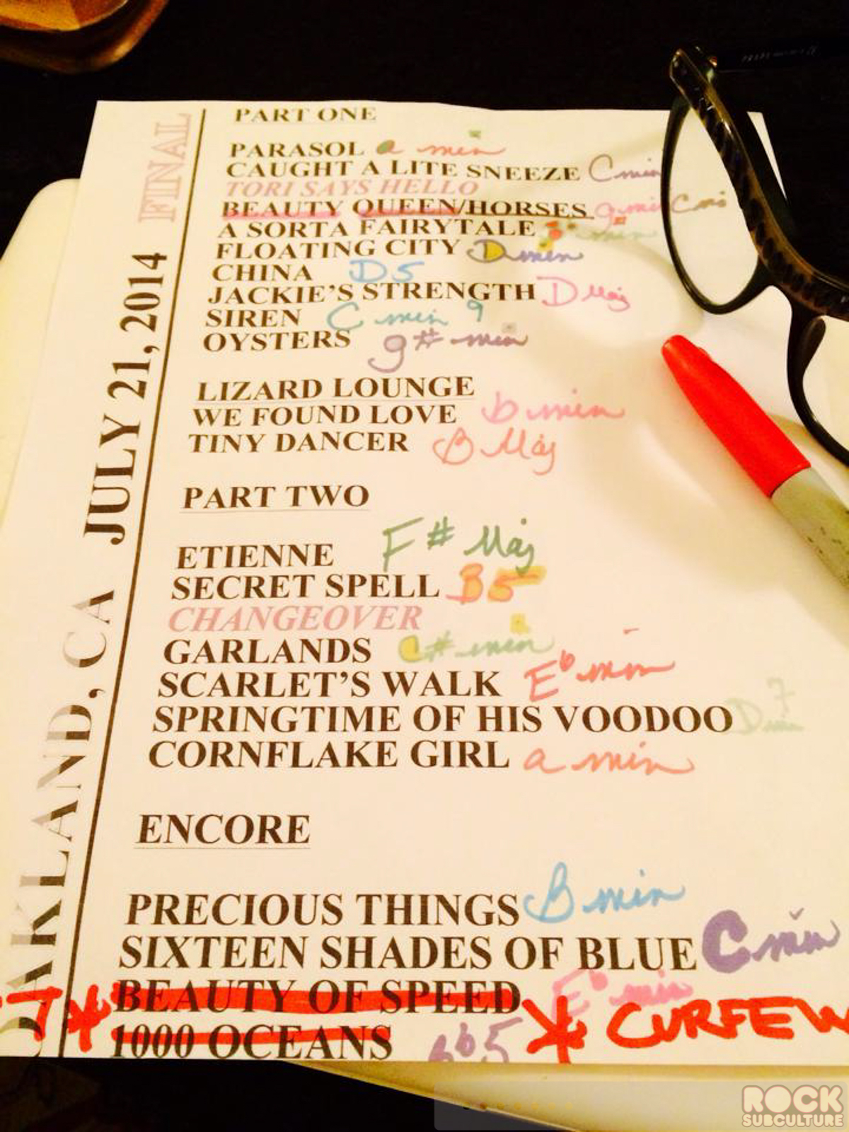 With this tour, Tori has been posting a photo of the set list after each on her official Facebook page, so below is the one from Paramount Theatre last night (not my photo credit):
