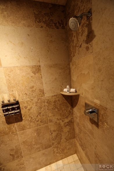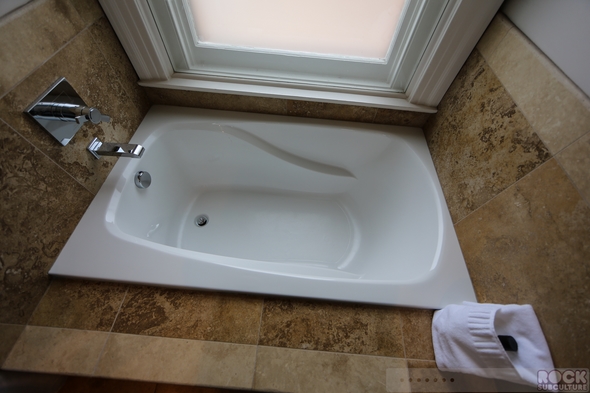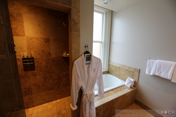 The bathroom was large for the room size, with a soaking tub as well as a separate (large) standing shower with two independently-controlled shower heads.