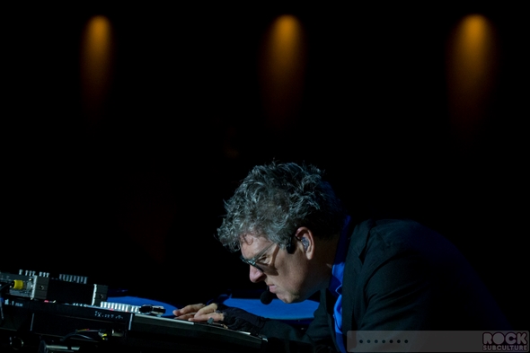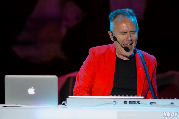 Below are some photos of Tom Bailey performing on stage (click any image for higher resolution versions of each photo); apologies for the lack of photos of Amanda, Angie, and Emily – they were not lit up much during the first three songs in which I was doing photography – check out my follow-up feature at Thunder Valley for additional photos and better coverage: