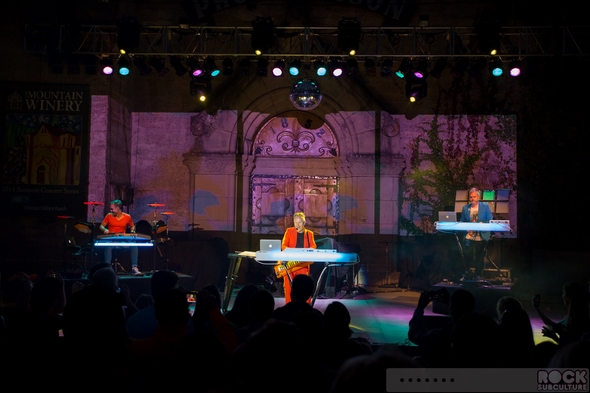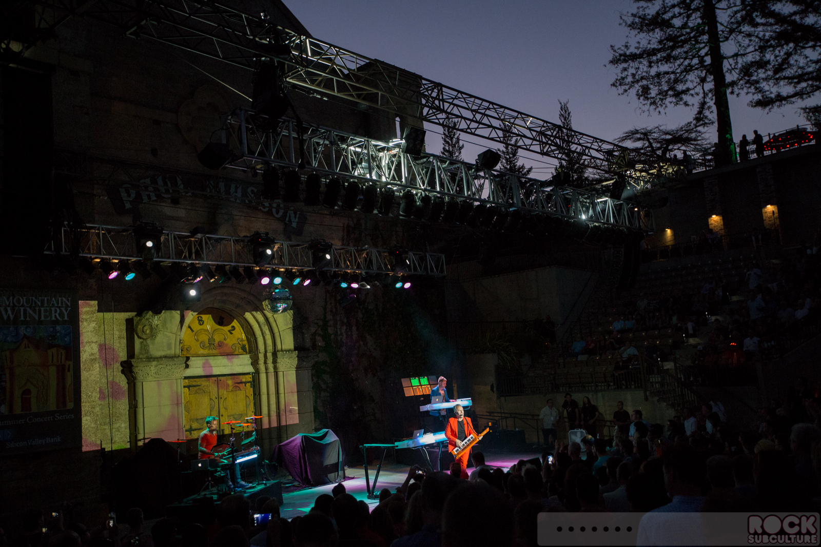 Doors at the beautiful Mountain Winery opened at 5:30 for the show with a 6:30 start time. There are a lot of awesome pre-show dining options at Mountain Winery, so the audience in the outdoor amphitheater grew fuller and fuller as the night wore on. The merch for this tour is pretty awesome, and there seemed to be a steady stream of people buying t-shirts, autographed CDs/DVDs and the like.