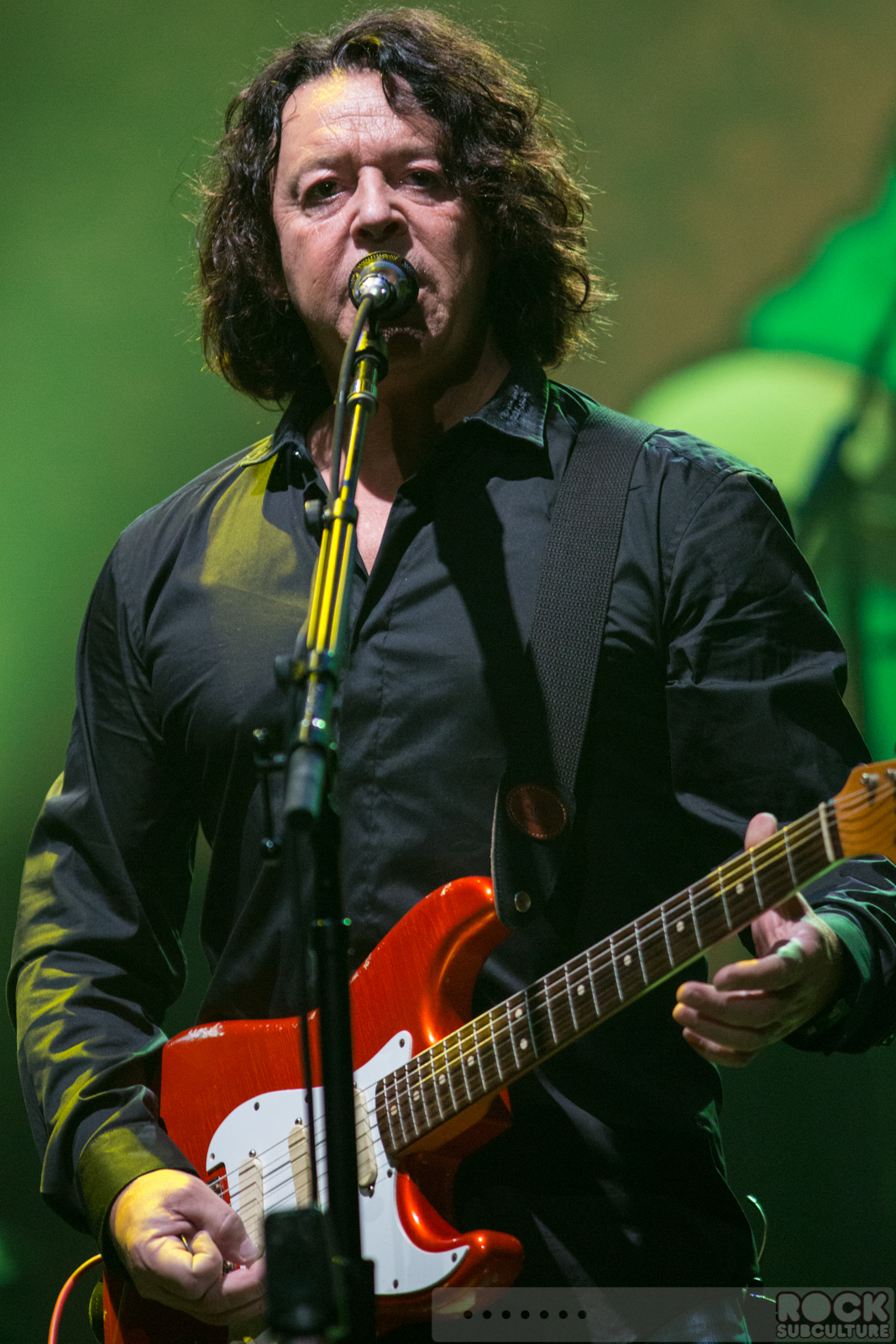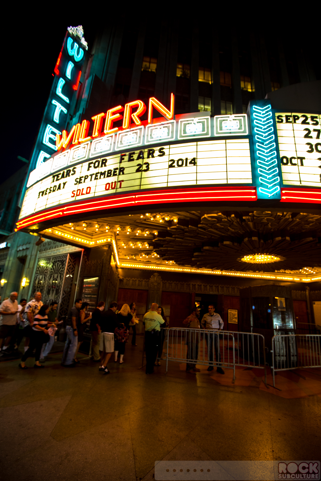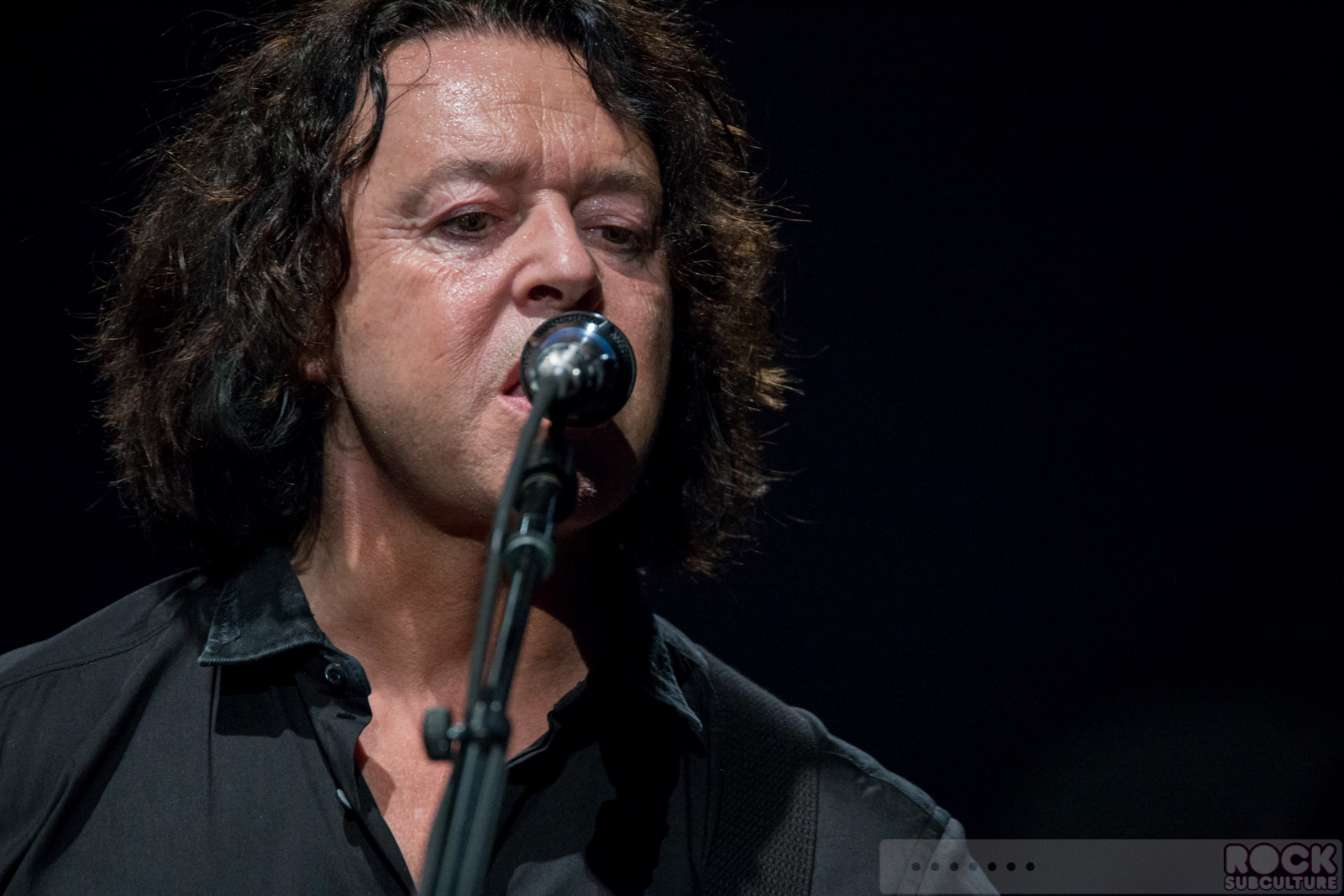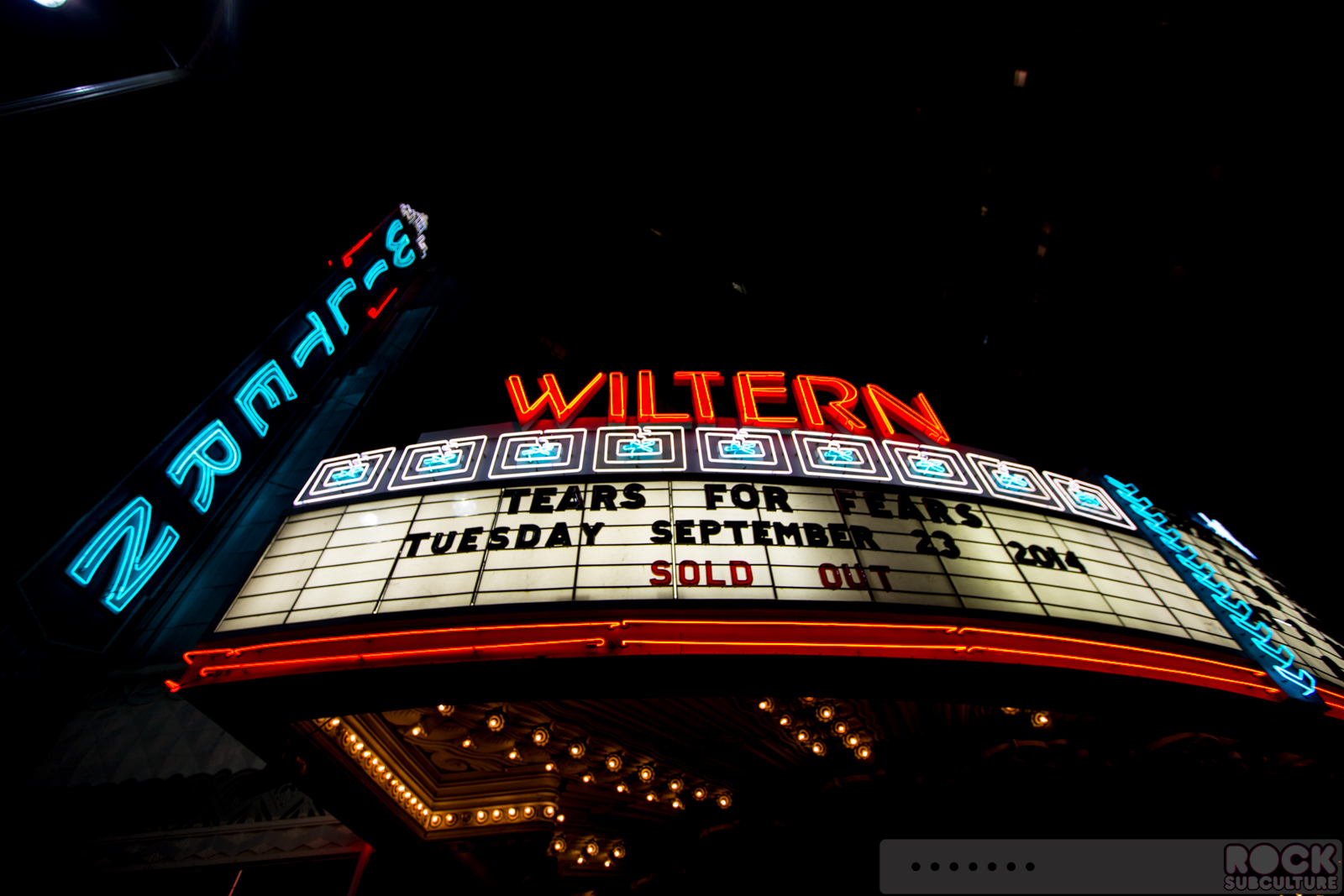 “Is that the new iPhone 6?” Roland Orzabal, early on in the show, as he and Curt Smith looked out over the sea of cell phones in the air, held by an exuberant sold out crowd at the historic Wiltern in Los Angeles last night. Tears for Fears, best known for their collection of timeless and classic New Wave hits from the 80s, do not tour very often, and when they do, the tours are usually not too many dates and cities. So there was a bit of an “event” feeling in the air, and based on some of their comments later in the show, they both seem to have quite an affinity for the City of Angels. As such, it seemed to be one of those special sort of shows, that unfold in a different sort of way. About halfway through the show, Curt even gave a shout out to Richard Blade, who was at the front of the GA crowd in the pit… if you didn’t know him by his own lifetime in music, you would think he was the band’s biggest fan (and maybe he is). Perhaps the development that represented the biggest point of fan service, prefaced by Roland with “nothing like changing it up for L.A.; obviously this is a special place for us…” was the surprise encore opener, a song that “we haven’t done for many, many years”. He said that this version will be included in their deluxe reissue of Songs From the Big Chair in November. He said it has been impossible for them to do live “until now”, and then proceeded to play “The Working Hour”. Definitely a special show by a fantastic band, and the place was certainly buzzing when it all came to a close after upwards of a two hour show.