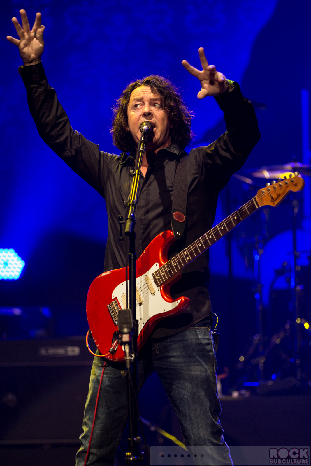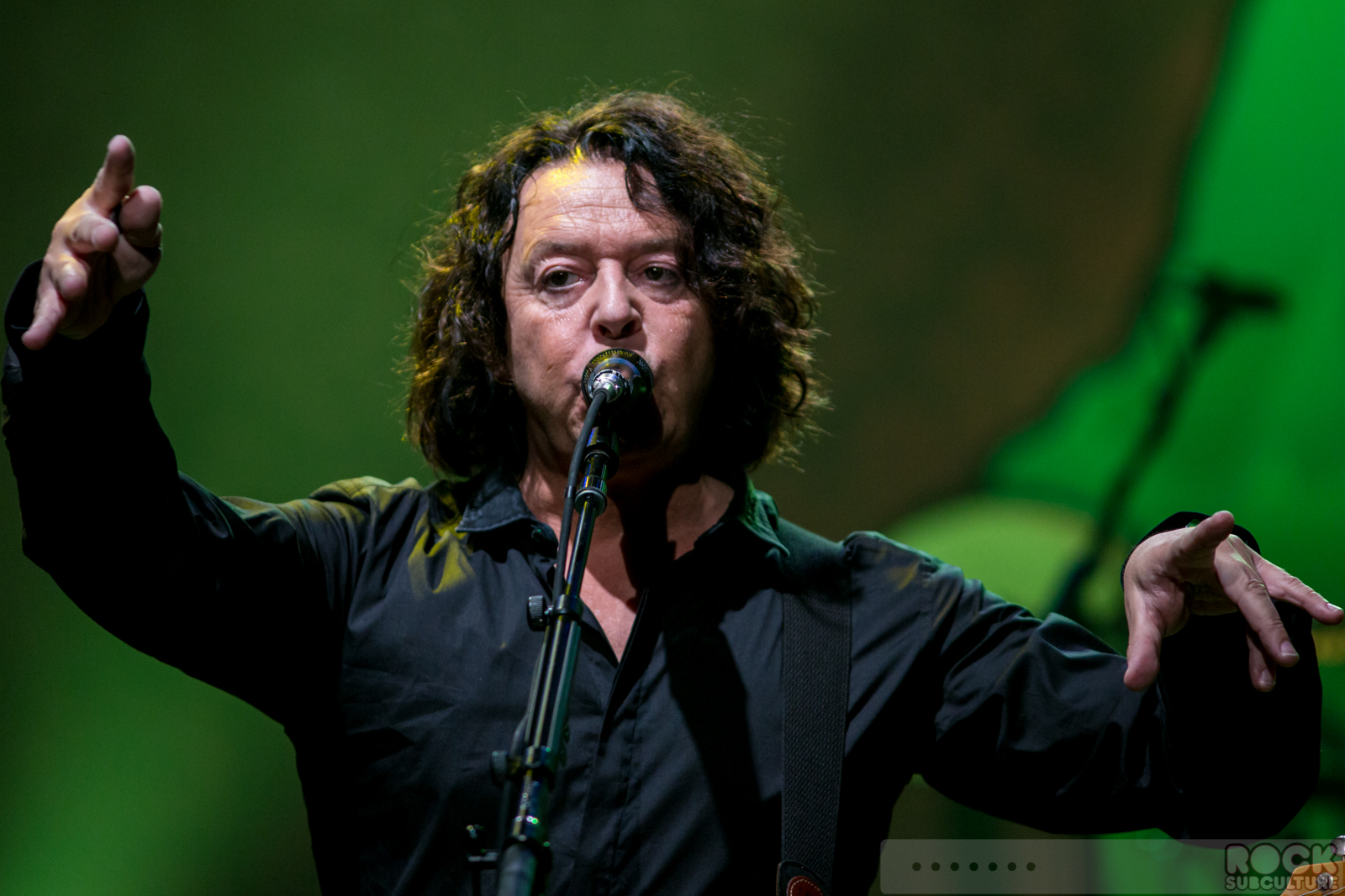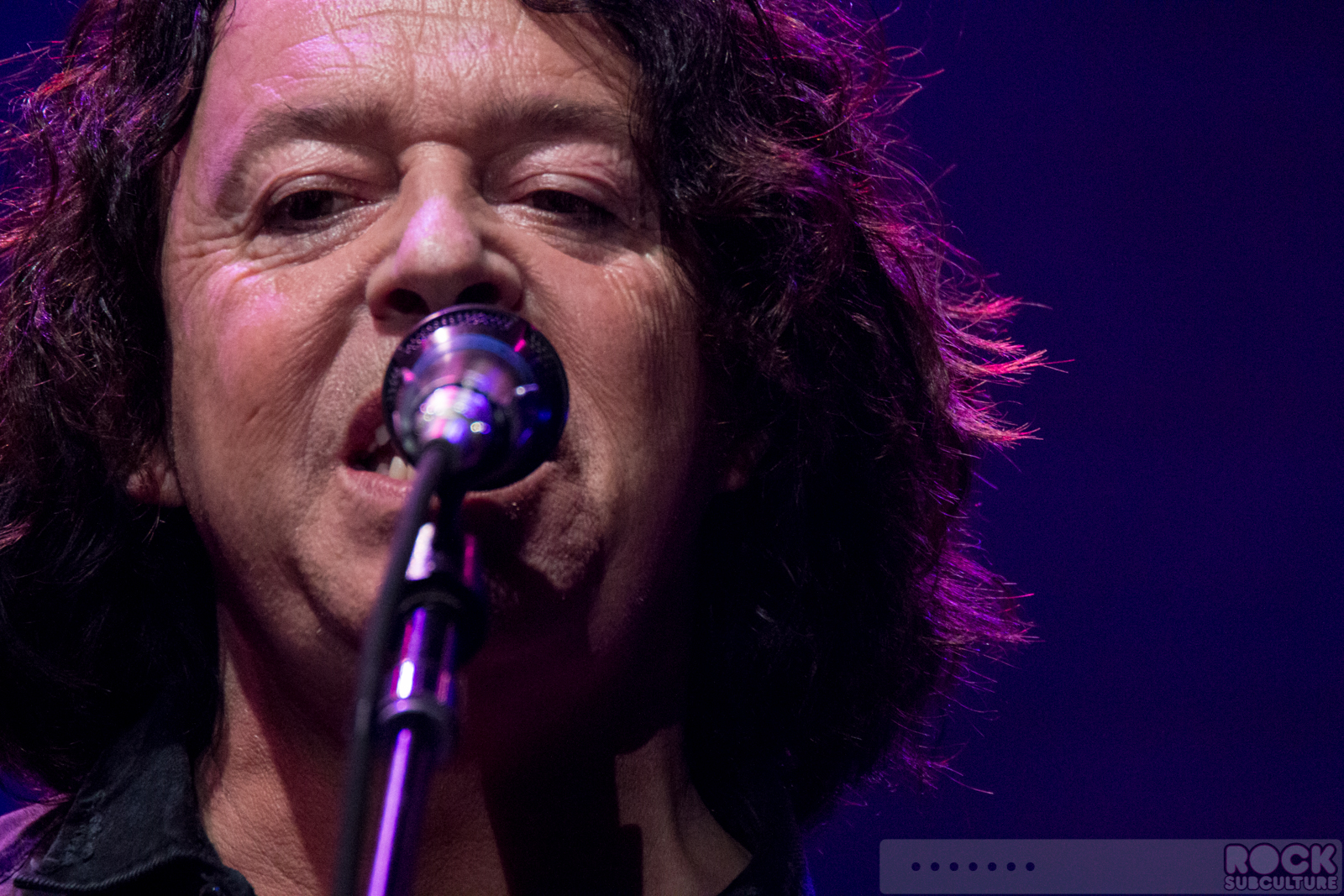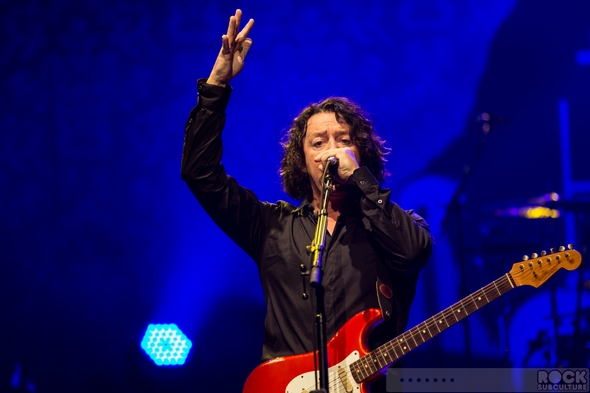 “Is that the new iPhone 6?” Roland Orzabal, early on in the show, as he and Curt Smith looked out over the sea of cell phones in the air, held by an exuberant sold out crowd at the historic Wiltern in Los Angeles last night. Tears for Fears, best known for their collection of timeless and classic New Wave hits from the 80s, do not tour very often, and when they do, the tours are usually not too many dates and cities. So there was a bit of an “event” feeling in the air, and based on some of their comments later in the show, they both seem to have quite an affinity for the City of Angels. As such, it seemed to be one of those special sort of shows, that unfold in a different sort of way. About halfway through the show, Curt even gave a shout out to Richard Blade, who was at the front of the GA crowd in the pit… if you didn’t know him by his own lifetime in music, you would think he was the band’s biggest fan (and maybe he is). Perhaps the development that represented the biggest point of fan service, prefaced by Roland with “nothing like changing it up for L.A.; obviously this is a special place for us…” was the surprise encore opener, a song that “we haven’t done for many, many years”. He said that this version will be included in their deluxe reissue of Songs From the Big Chair in November. He said it has been impossible for them to do live “until now”, and then proceeded to play “The Working Hour”. Definitely a special show by a fantastic band, and the place was certainly buzzing when it all came to a close after upwards of a two hour show.
