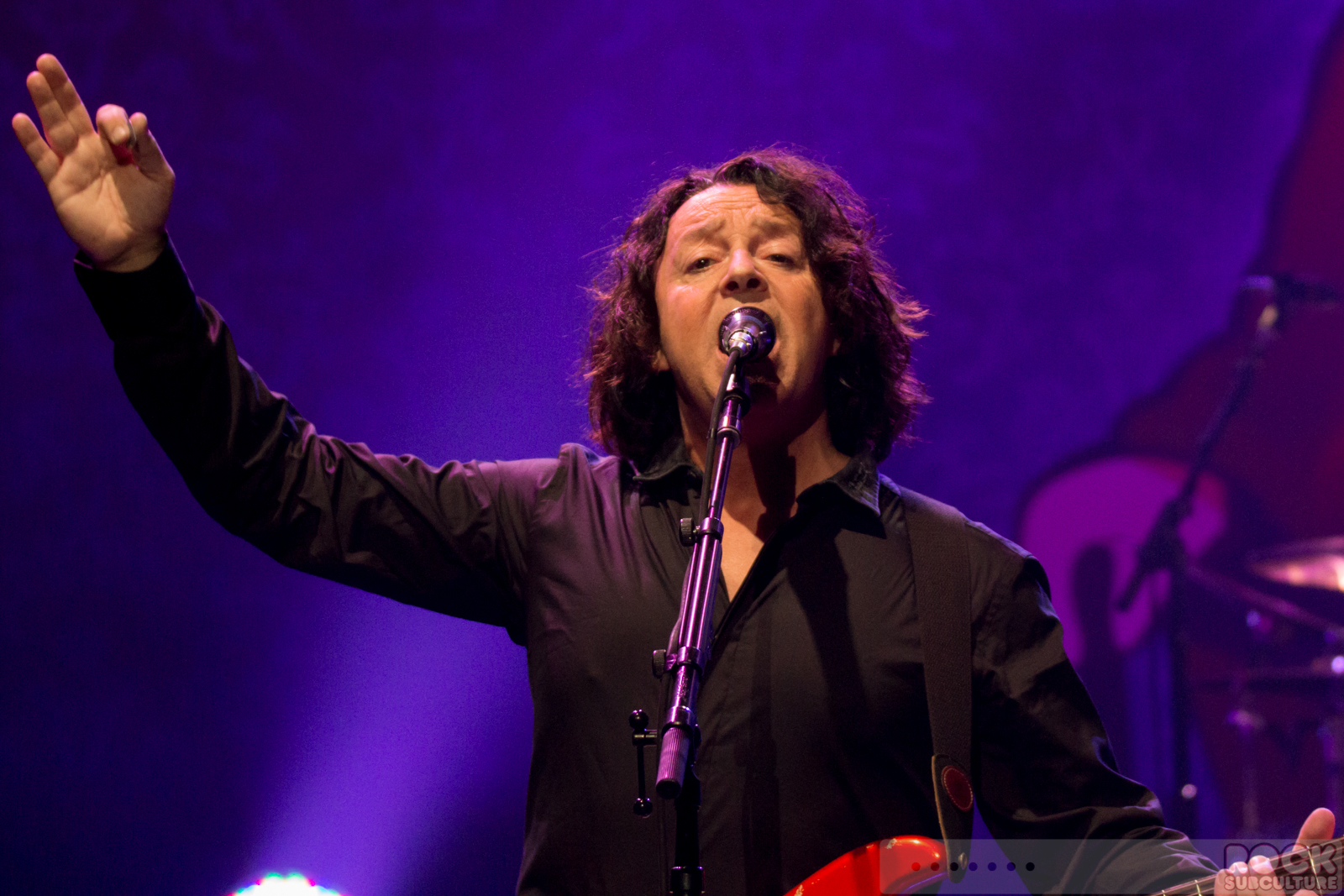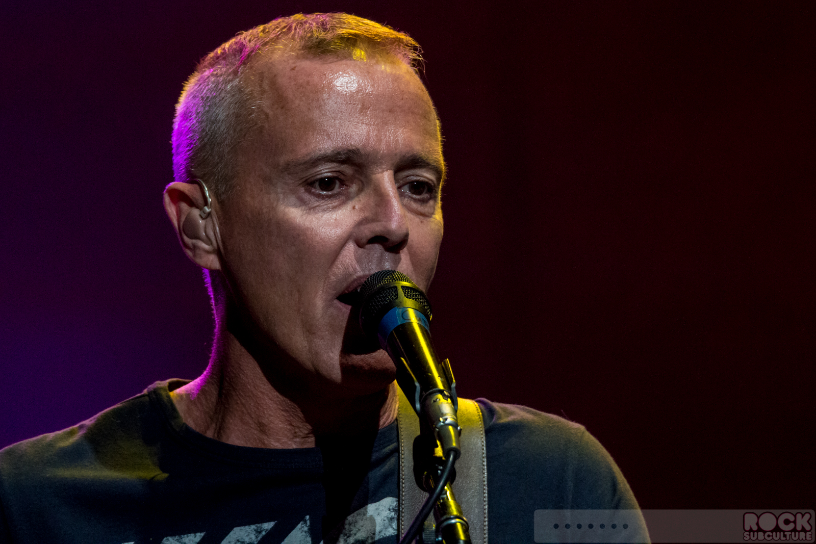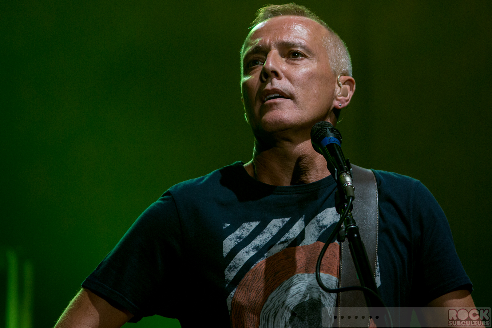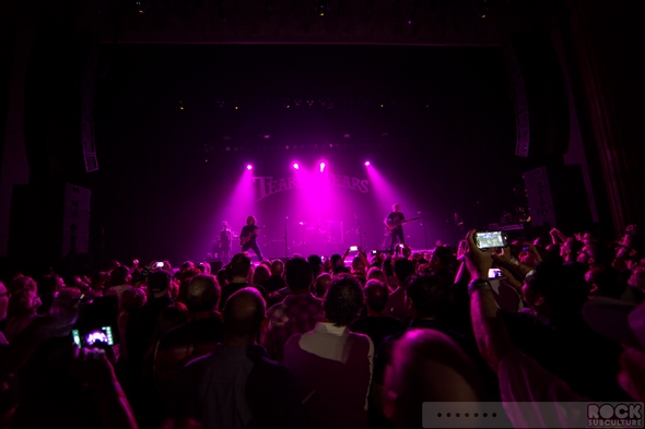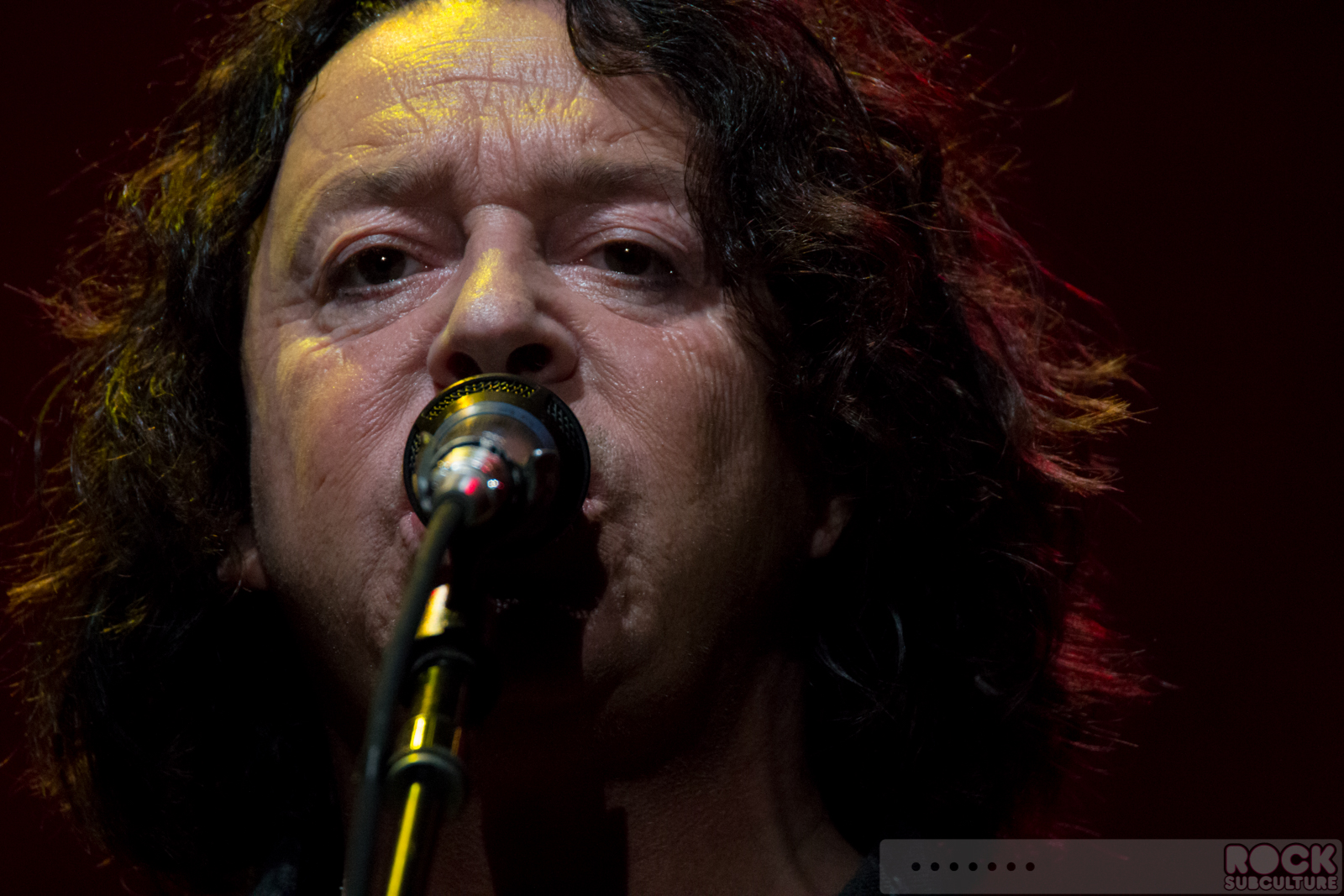 “Is that the new iPhone 6?” Roland Orzabal, early on in the show, as he and Curt Smith looked out over the sea of cell phones in the air, held by an exuberant sold out crowd at the historic Wiltern in Los Angeles last night. Tears for Fears, best known for their collection of timeless and classic New Wave hits from the 80s, do not tour very often, and when they do, the tours are usually not too many dates and cities. So there was a bit of an “event” feeling in the air, and based on some of their comments later in the show, they both seem to have quite an affinity for the City of Angels. As such, it seemed to be one of those special sort of shows, that unfold in a different sort of way. About halfway through the show, Curt even gave a shout out to Richard Blade, who was at the front of the GA crowd in the pit… if you didn’t know him by his own lifetime in music, you would think he was the band’s biggest fan (and maybe he is). Perhaps the development that represented the biggest point of fan service, prefaced by Roland with “nothing like changing it up for L.A.; obviously this is a special place for us…” was the surprise encore opener, a song that “we haven’t done for many, many years”. He said that this version will be included in their deluxe reissue of Songs From the Big Chair in November. He said it has been impossible for them to do live “until now”, and then proceeded to play “The Working Hour”. Definitely a special show by a fantastic band, and the place was certainly buzzing when it all came to a close after upwards of a two hour show.