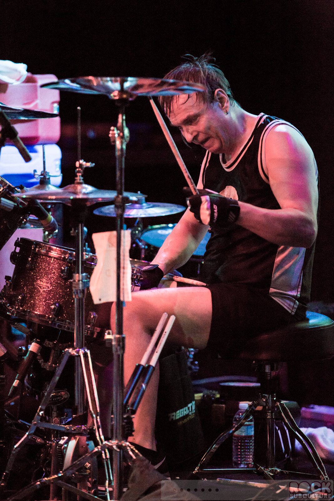 I usually open my reviews with a quote from the headlining artist, but the Melvins were pretty much all business at Assembly Music Hall on Wednesday night, kicking off their “Hold It In” tour in Sacramento. Quite the prolific band, they released their album Hold It In the day before, a collaboration with Buzz Osborne and Dale Crover, with Butthole Surfers members Paul Leary and Jeff Pinkus. On stage last night were all but Paul Leary. With a democratic stage set up, featuring Dale Crover at center on drums with King Buzzo and Jeff Pinkus flanking either side, they are one of those interesting collaborations that seems to lack ego. Just as their music is balanced by the contributions of each player – though with a lot of variety and variation song to song – each seems to hold their own with their live show, and the sonic spotlight seems to shift around as called for by moments and breaks in each song. The star of the band is really the music, and it’s eclectic style that doesn’t really fit into any particular genre (though there are strong foundations of both metal and punk at the heart of it). Truly an important band, in a historical sense, though that wouldn’t matter as much if they didn’t make compelling music or put on a killer live show, and in their case, they do both. Definitely a tour with catching as 2014 races to conclusion.