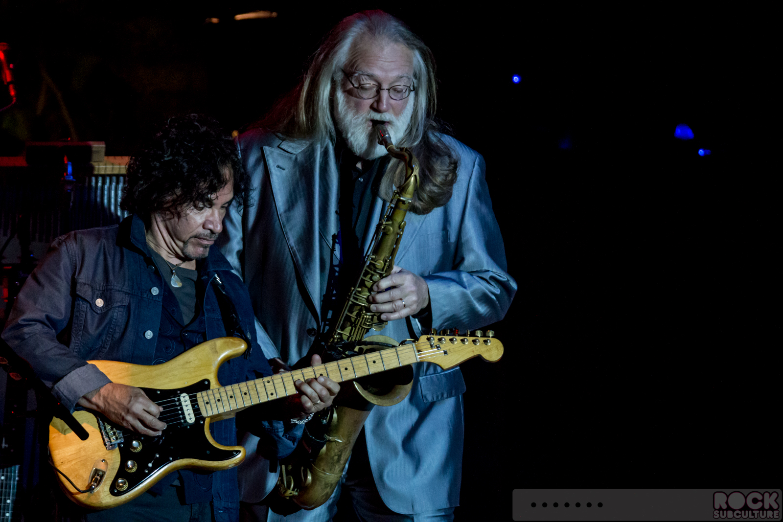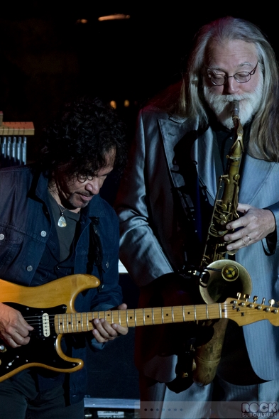 It all came to a climax during the close of the initial set – and extended version of (ironically enough) “Do What You Want, Be Who You Are”… as the song came to a close, an avalanche of annoyance within the floor crowd found expression through shouts from some who’d had enough, with chants of “get a room!”, “sit down Bill Gates!”, and “nice hat!” (oh… in addition to everything else, the woman wore a hat with flashing lights). This kind of broke the wall between artist and fan, and I saw Daryl Hall chuckle, and he joined in and quietly said, over a funny keyboard riff, “I can’t go for that… no can do… no can no can no can do… sometimes… sometimes… woo woo…” The crowd burst into laughter, and then they went into the set closer, “I Can’t Go For That (No Can Do)”. Quite the prescient song list selection. And, making it even more funny, as doppelgänger/faux Bill Gates was so deep into his “dancing”/groping/beer spilling world, he and she with the light up hat completely were oblivious to it all, and their part in it.
