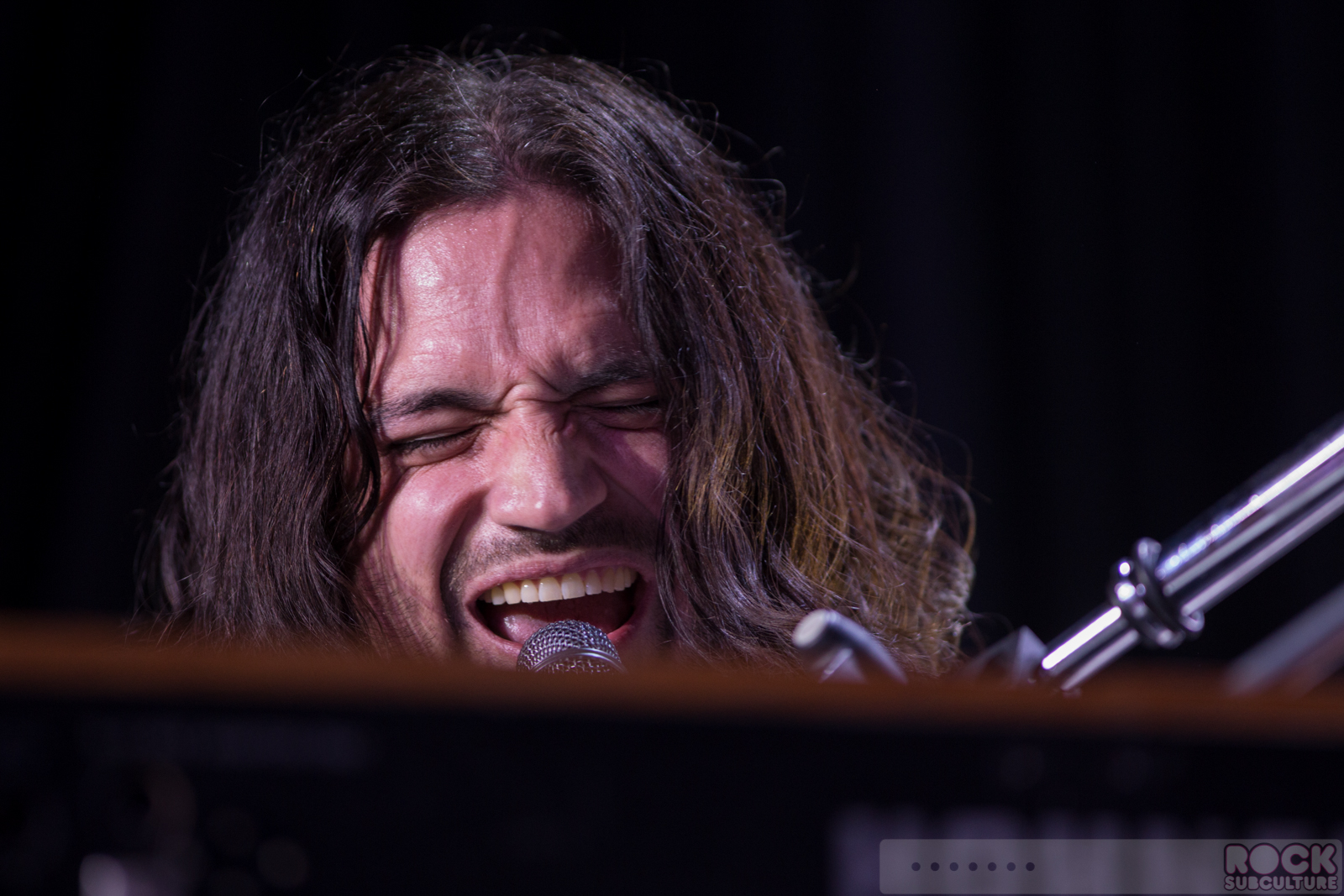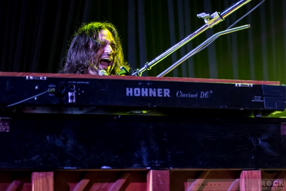 Doing a little research, it seems that Antonio plays a “Clavinet” (an instrument I’ve never heard of previously), which is characterized as “an electronically amplified mechanical instrument” with 60 keys and a five octave span that covers the range of an electric guitar and electric bass. Apparently these can employ a “whammy bar” and other distortion effects, which is what I witnessed during the show. Very interesting stuff! His is a Hohner Clavinet D6.