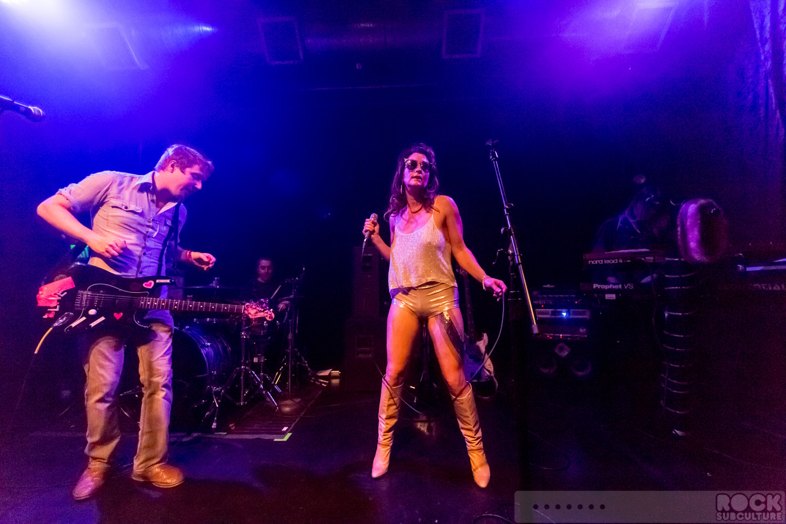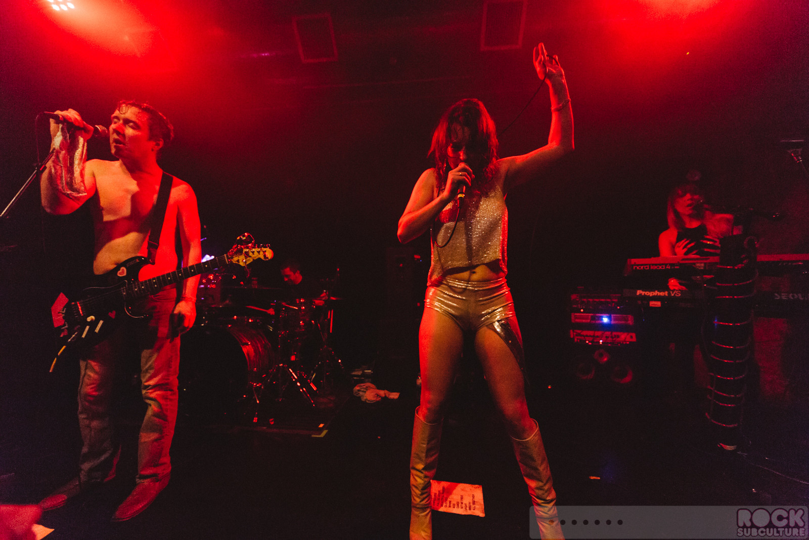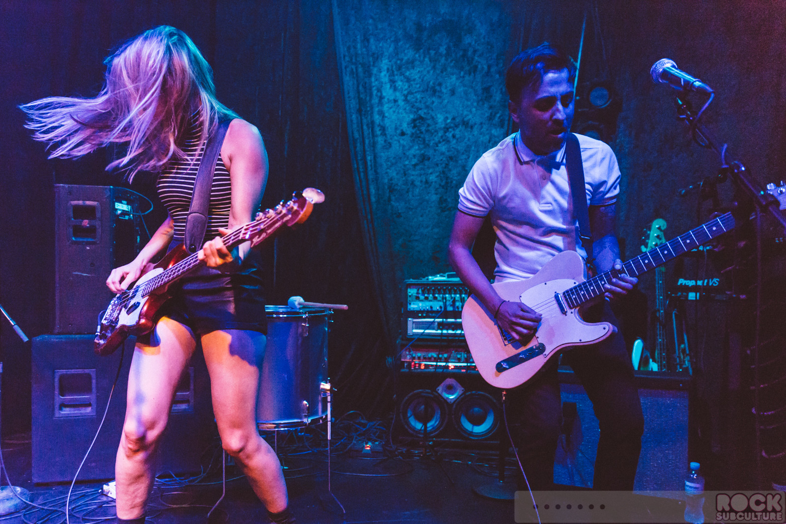“Is that the only pair of panties we’re going to get tonight?” Lisa Light, remarking on the underwear tossed at her co-vocalist and guitarist Scott Blonde of The Lovemakers at Popscene at Rickshaw Stop in San Francisco Friday night, as part of their “My Bloody Valentine’s Day Party on Friday the 13th of February”. The band seem to have a special relationship with the annual romantic holiday, though looking around it seemed to have turned out more singles looking for fulfillment than happily coupled couples. Building on their 2014 reunion, the band seems at it’s best live and on stage, literally pouring water on their hot and sultry style of retro pop and dance music. The Lovemakers were supported with a blazing set by Beginners, who came up from their home in Los Angeles. Filling in with fantastic DJ sets were Popscene’s Aaron Axelsen and Omar.