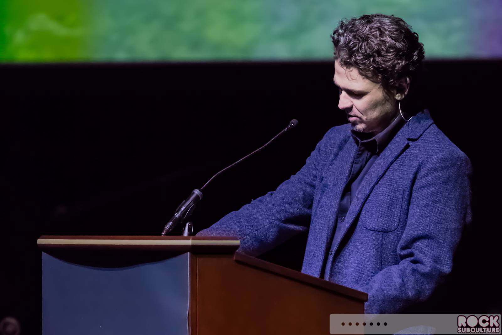 Chris Martin wrote his own introduction for the evening, read by Kelly Corrigan… “The son of a tiger trainer and a lap dancer, this man has been playing music since the age of 7, often in return for fruits and vegetables. He was not accepted into NSYNC, and therefore formed Coldplay. He understands at least one language and is very happy to be here…”