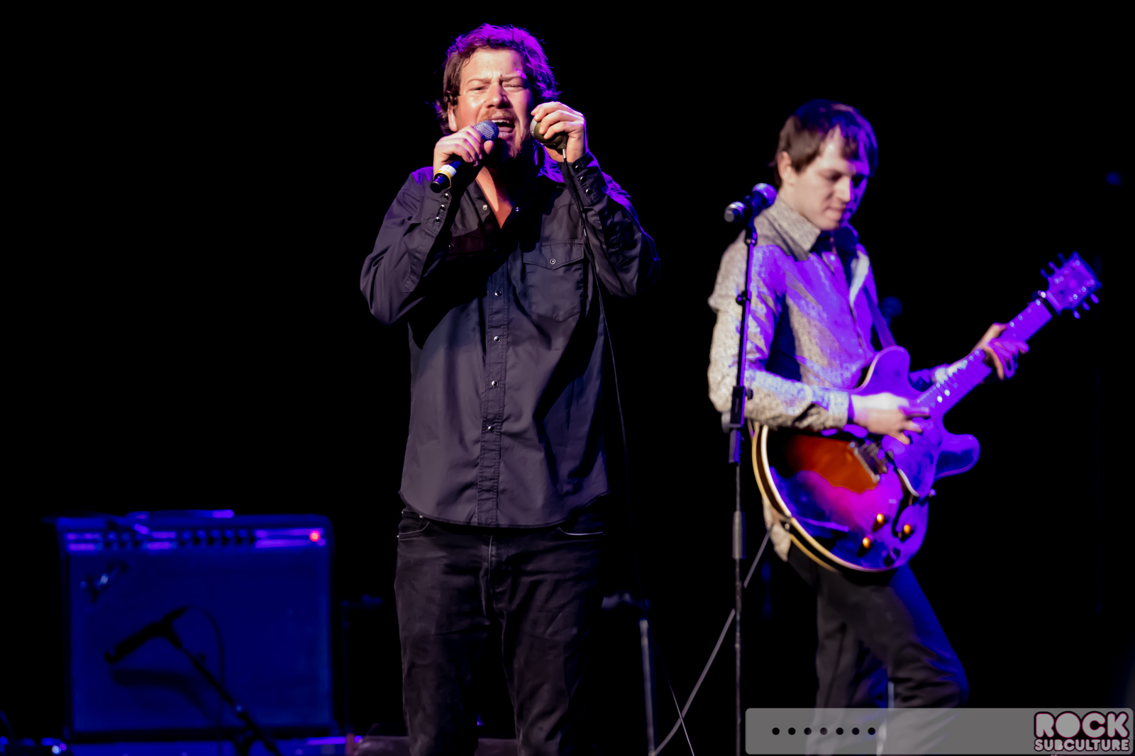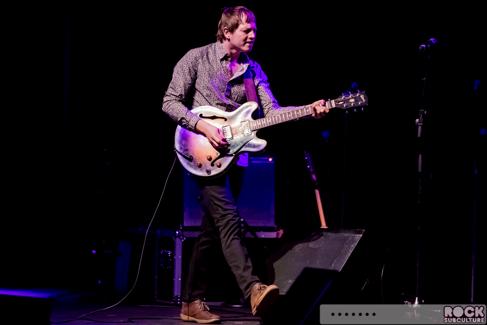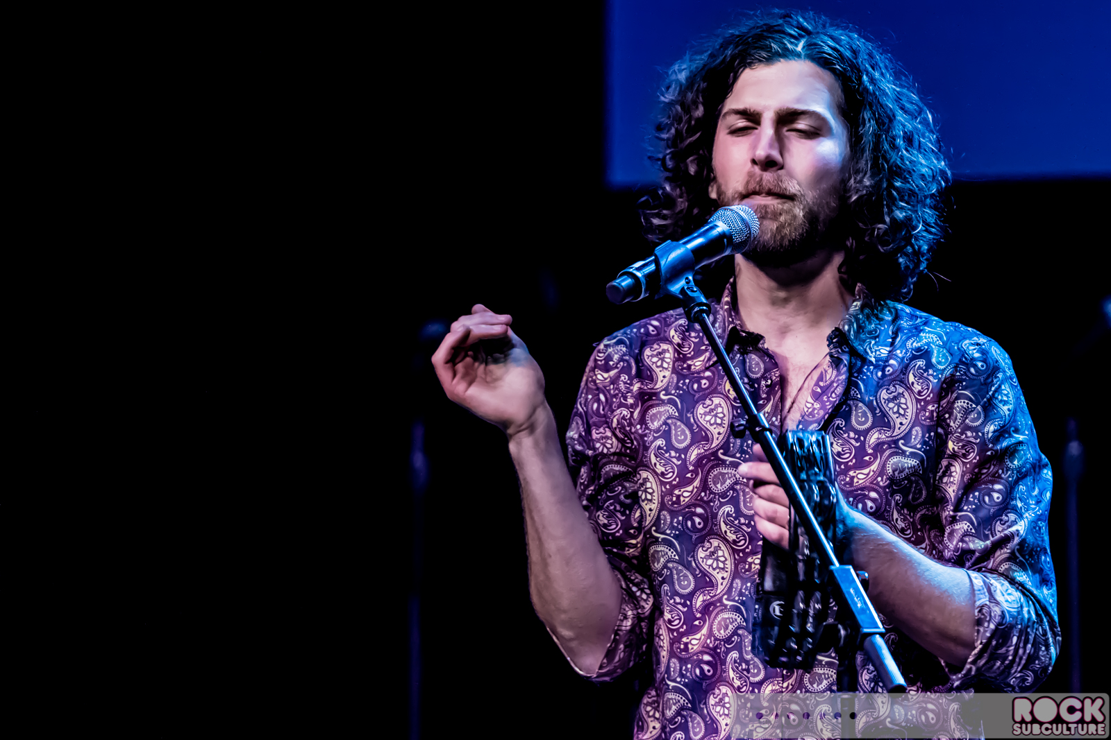 Inside, the floor in front of the stage that would be general admission standing at most shows at the venue was filled with white linen-covered round tables with chairs, as well as candlelight to set a different sort of mood for the evening. Though it was created as a fundraiser, there was still very affordable seating up in the balcony above the stage.
