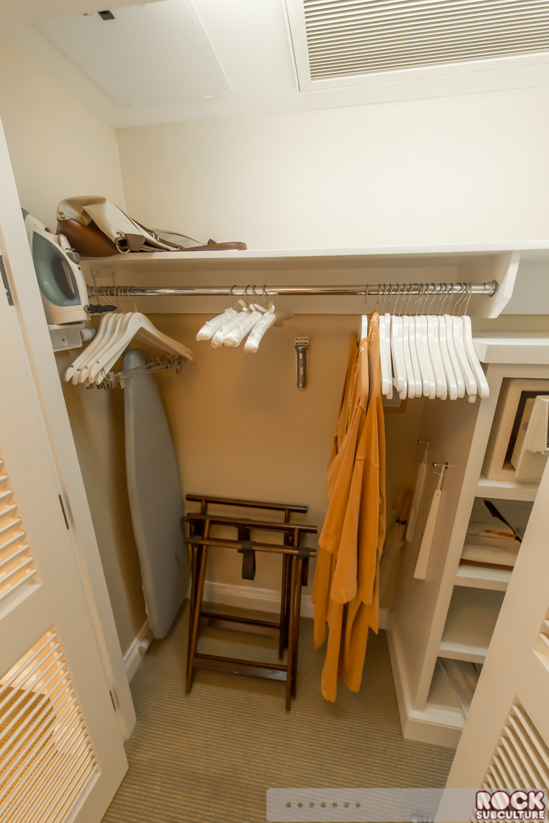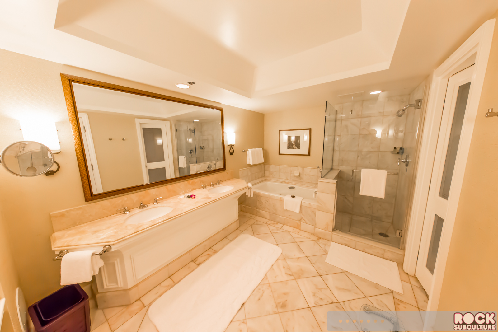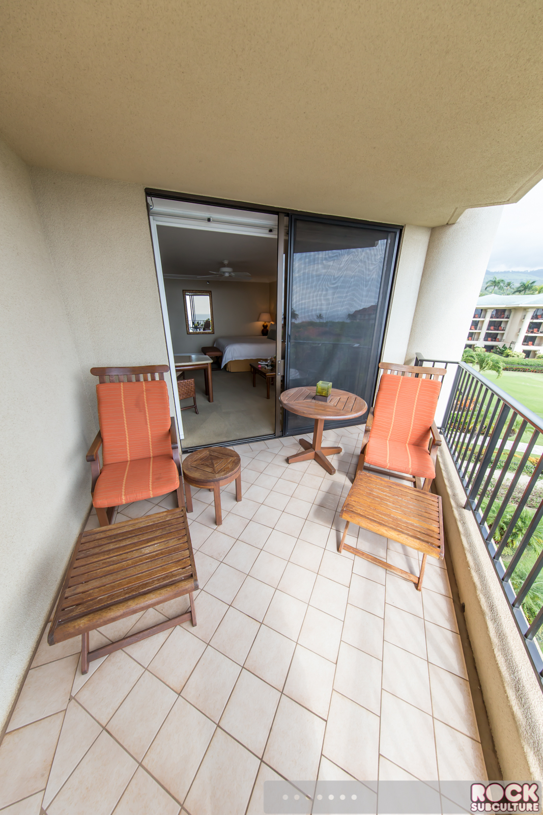 The room was spacious, with a couch and coffee table, a full desk, and a walk out lanai with a partial ocean view. The room also included an empty mini-fridge and electronic safe, was well as a coffee maker. The large bathroom featured a soaking tub, standing shower with glass doors, and double sinks.