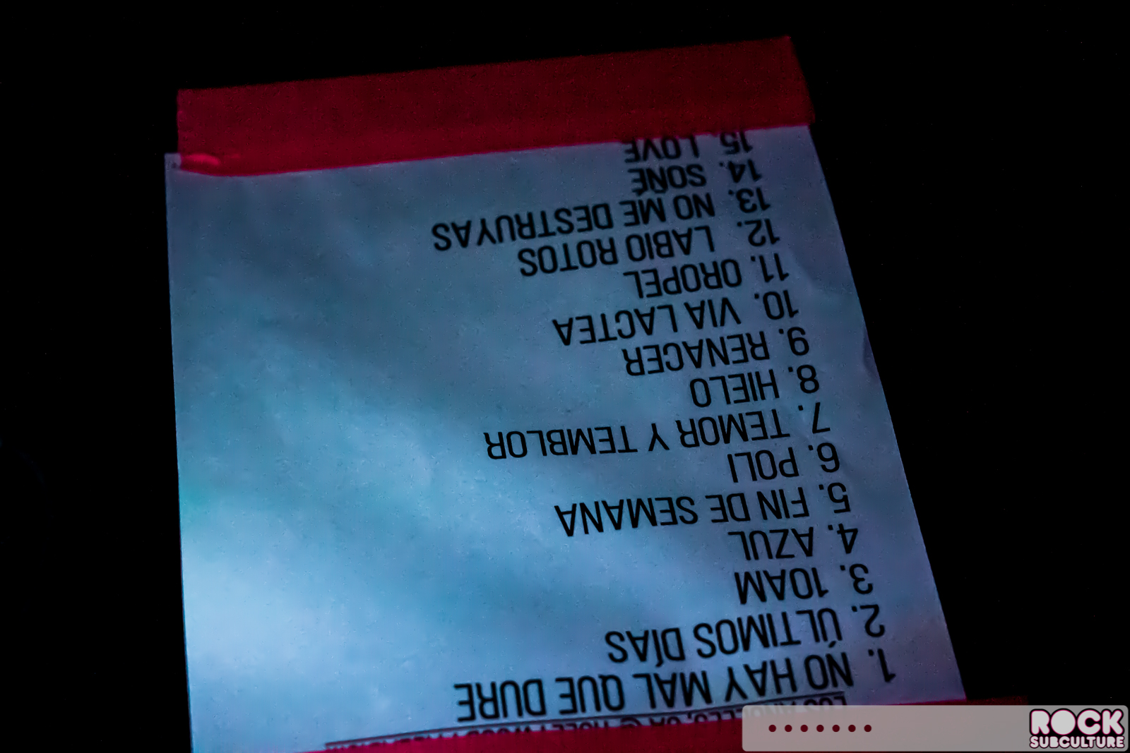 Of the 18 songs, 8 were from Art of Doubt, 5 from Fantasies, 3 from Synthetica, and 1 each from Pagans in Vegas and Old World Underground, Where Are You Now?.